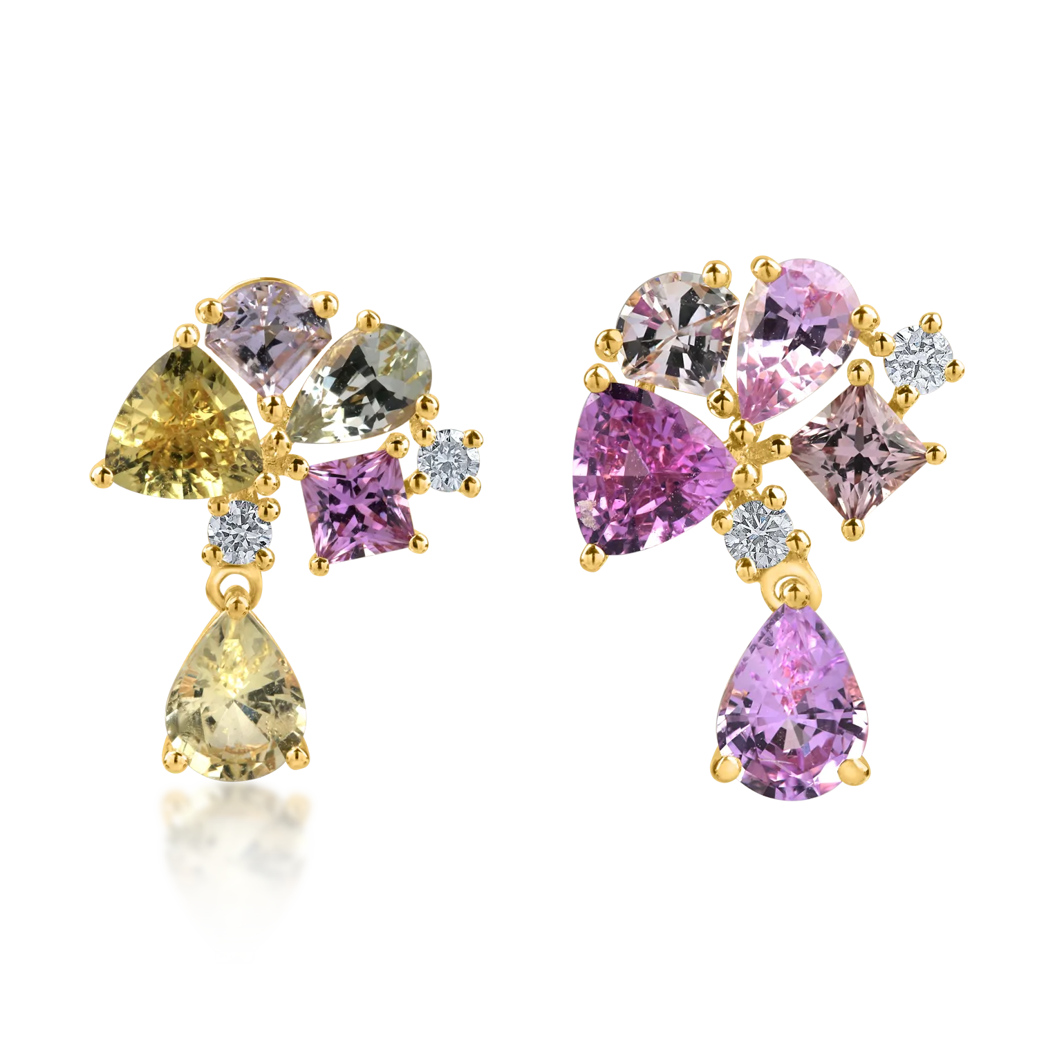 Cerceii geometrici din aur galben cu safire multicolore de 3.76ct sunt o explozie de nuante sofisticate, intr-un design modern. Un accesoriu versatil care adauga caracter oricarei tinute. Redefineste-ti stilul cu bijuterii de la TEILOR.