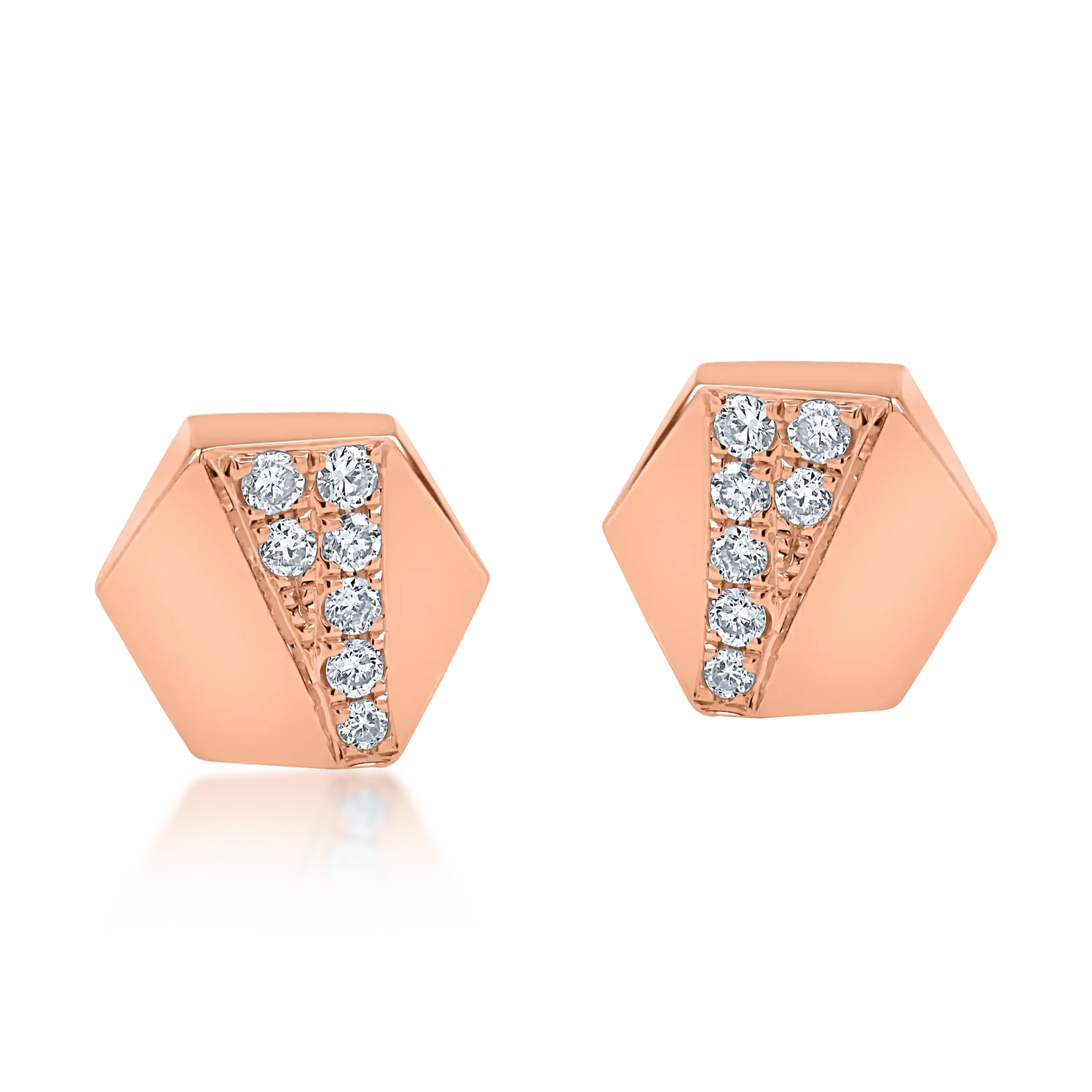 Paseste in lumea seducatoare a bijuteriilor pregatite sa cucereasca inimi si priviri. Perechea de cercei geometrici din aur roz cu diamante de 0.072ct imbina echilibrat stralucirea cu eleganta intr-un design pretios. TEILOR vorbeste despre emotia fiecarei clipe.