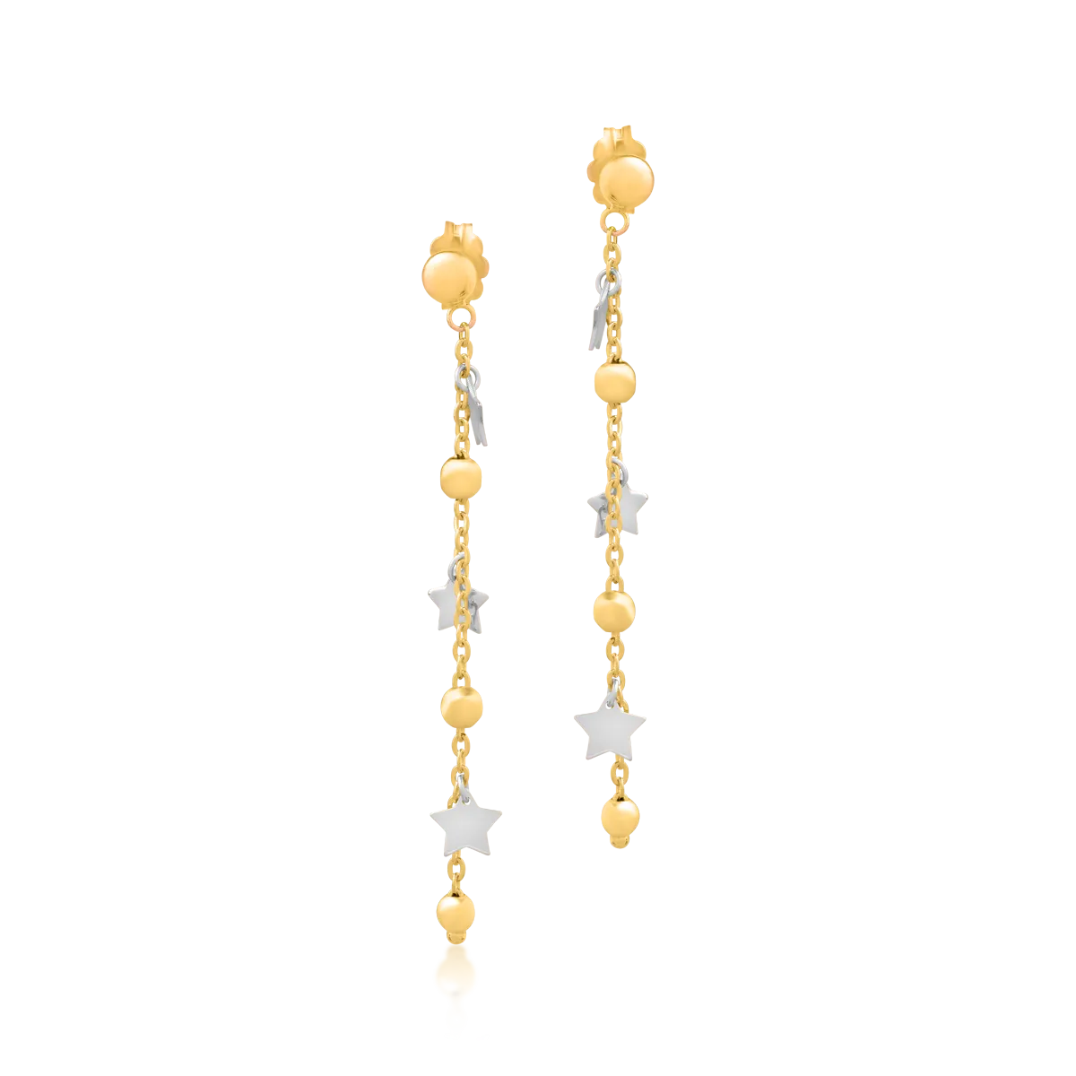 Intotdeauna originala, mereu surprinzatoare - TU. Perechea de cercei lungi cu stelute din aur alb-galben imbina echilibrat stralucirea cu eleganta intr-un design pretios. TEILOR este despre tine. Despre bucuria fiecarei clipe.