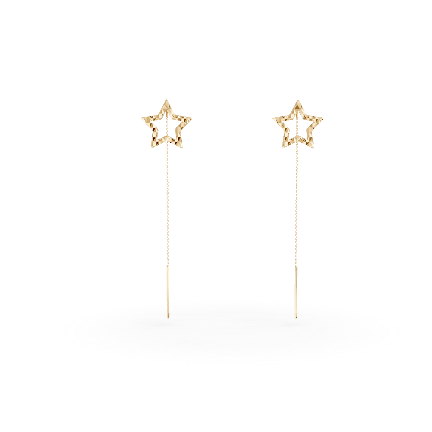 Intotdeauna originala, mereu surprinzatoare - TU. Autenticitatea designului si rafinamentul cerceilor lungi cu stelute din aur galben dau o nota eleganta oricarui stil. O piesa pe care iti doresti sa o porti iar si iar. Alege sa iti fie sursa de inspiratie.