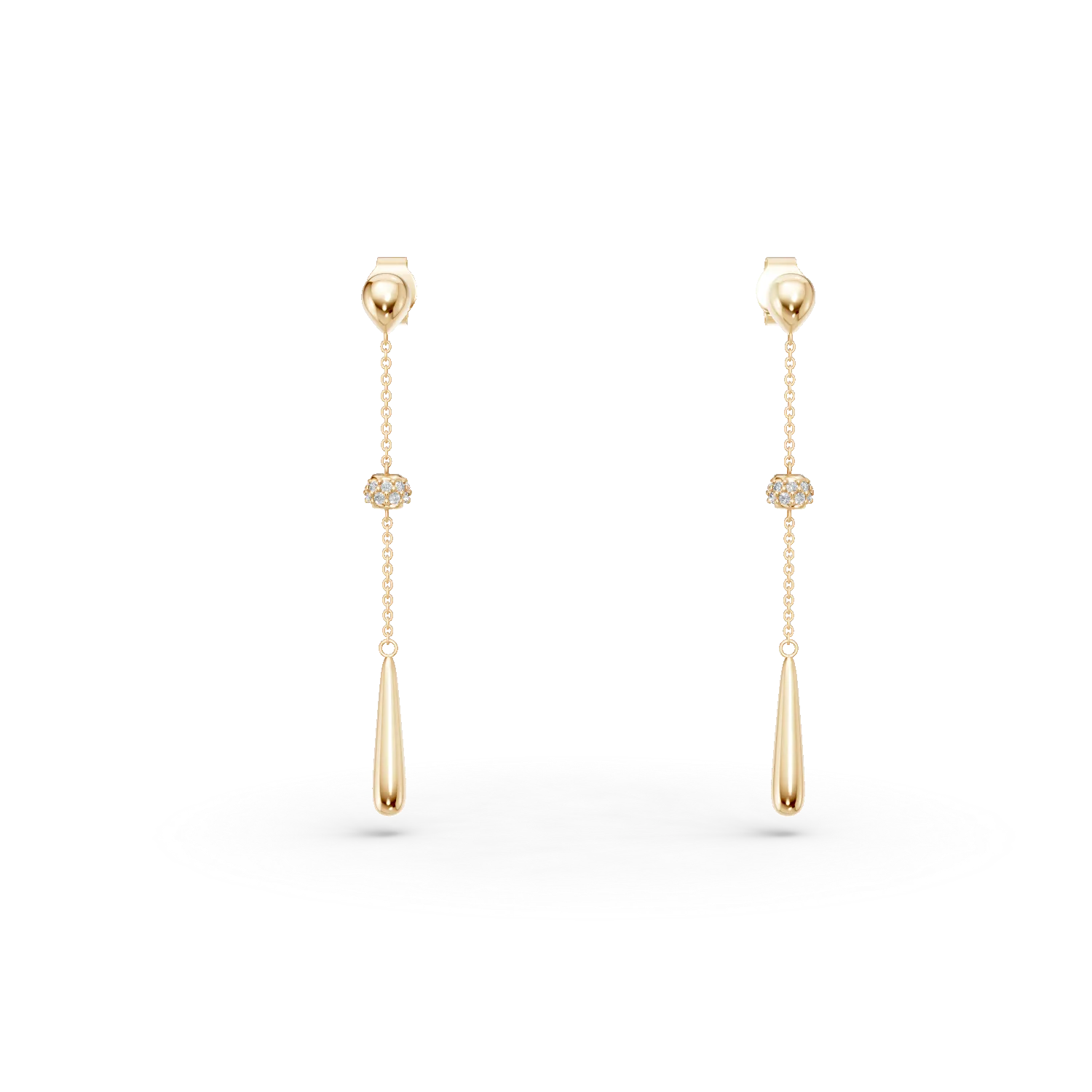 Eleganti si sofisticati, acesti cercei lungi din aur galben cu zirconii impresioneaza prin rafinamentul liniilor fluide si stralucirea discreta a detaliilor. Designul alungit, sustinut de un lant fin, ofera o miscare delicata si atrage privirile prin eleganta simpla, dar plina de impact. Zirconiile adauga o nota subtila de luminozitate, completand perfect caldura aurului galben. Ideali pentru tinute de seara, dar si pentru aparitii moderne de zi, acesti cercei aduc un plus de stil si feminitate fiecarei ocazii. Descopera eleganta contemporana la TEILOR si poart-o cu incredere!