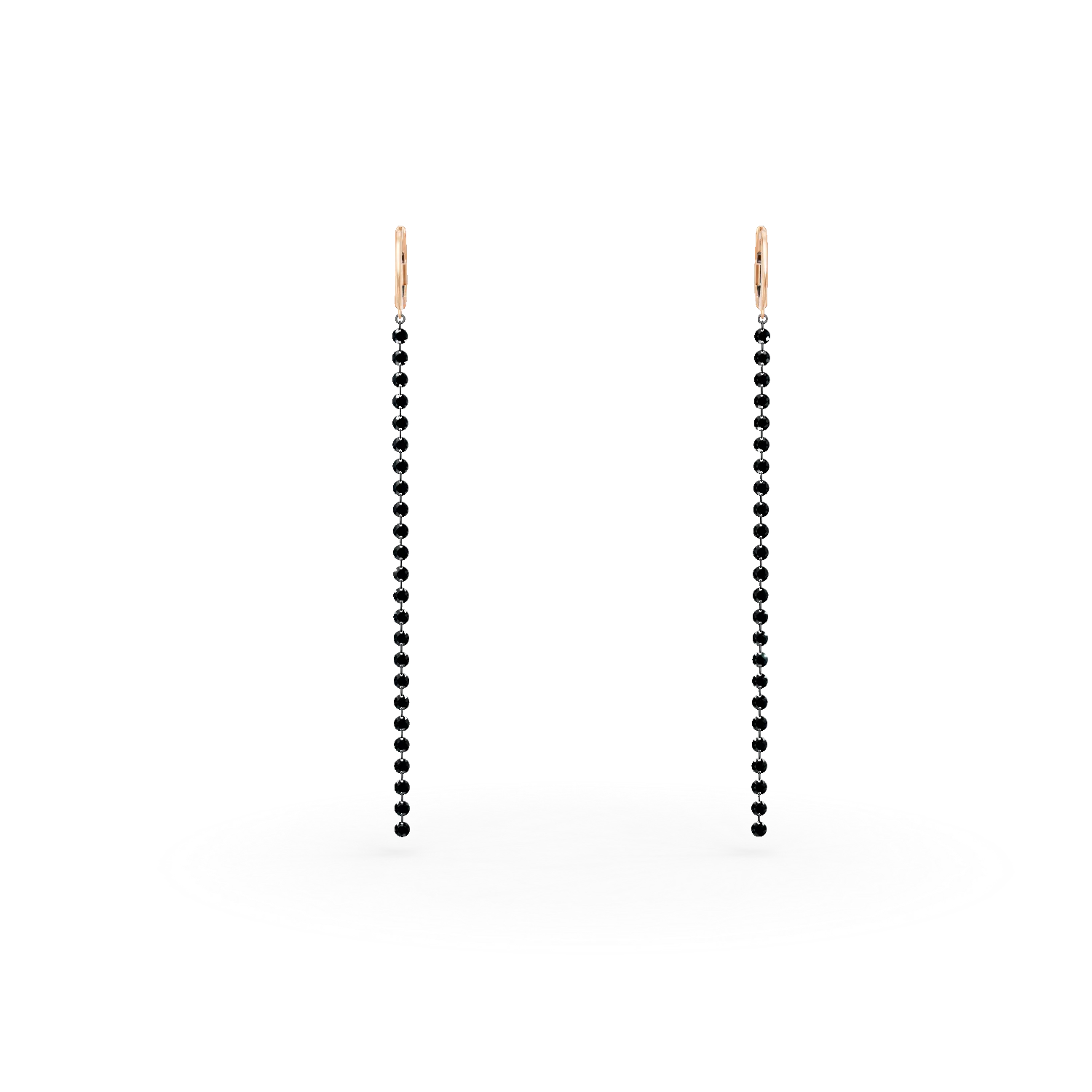 Cercei lungi din aur roz cu diamante negre de 2.5ct