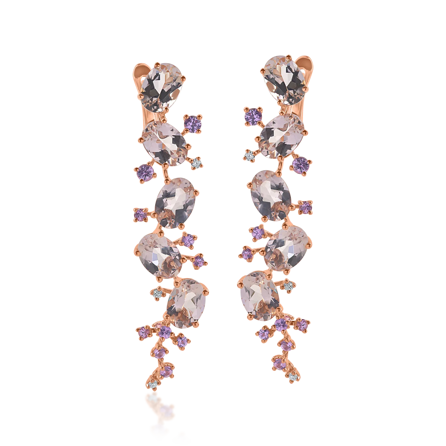 Poarta bijuteriile care iti dau incredere in tine. Perechea de cercei lungi din aur roz cu pietre pretioase si semipretioase de 7.45ct imbina echilibrat stralucirea cu eleganta intr-un design pretios. TEILOR este despre tine. Despre bucuria fiecarei clipe.
