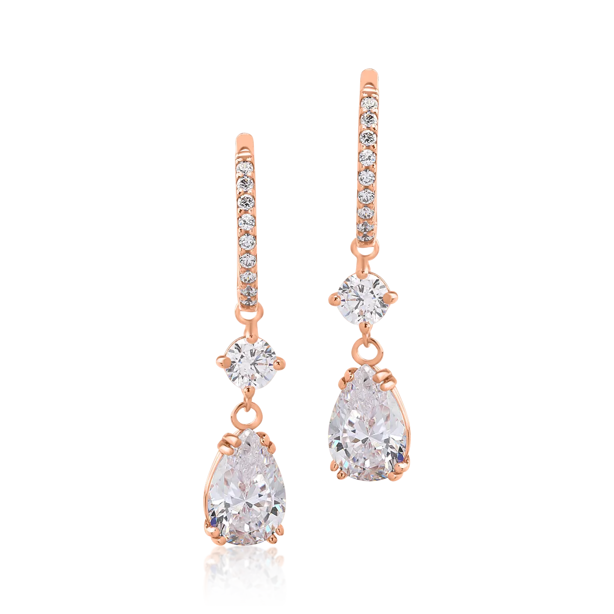 Descopera bijuteriile care iti descriu personalitatea si iti dau incredere in tine. Perechea de cercei lungi din aur roz cu zirconii contureaza o simfonie de reflexii care captiveaza privirile. La fel ca tine. O piesa pe care iti doresti sa o porti iar si iar. Alege sa iti fie sursa de inspiratie.