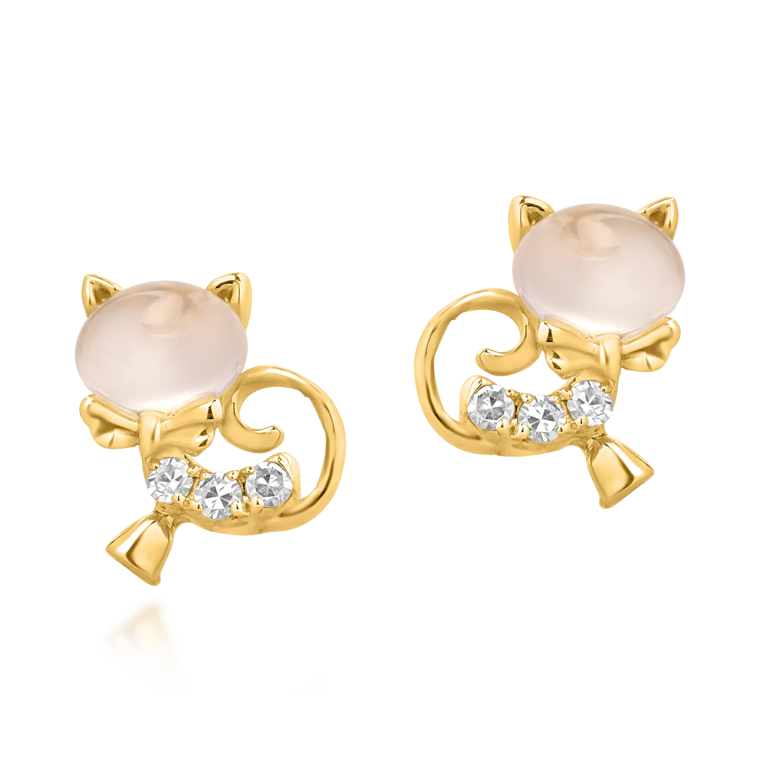 Universul copiilor este magic. Te invitam sa il descoperi in acele bijuterii care exprima o lume a libertatii si naturaletii. Prin sclipiri discrete, in nuante vii, cerceii pisicute pentru copii din aur galben cu topaze albe de 0.59ct si diamante de 0.036ct lumineaza privirea si zambetul celor mici. TEILOR adauga copilariei cele mai frumoase detalii.