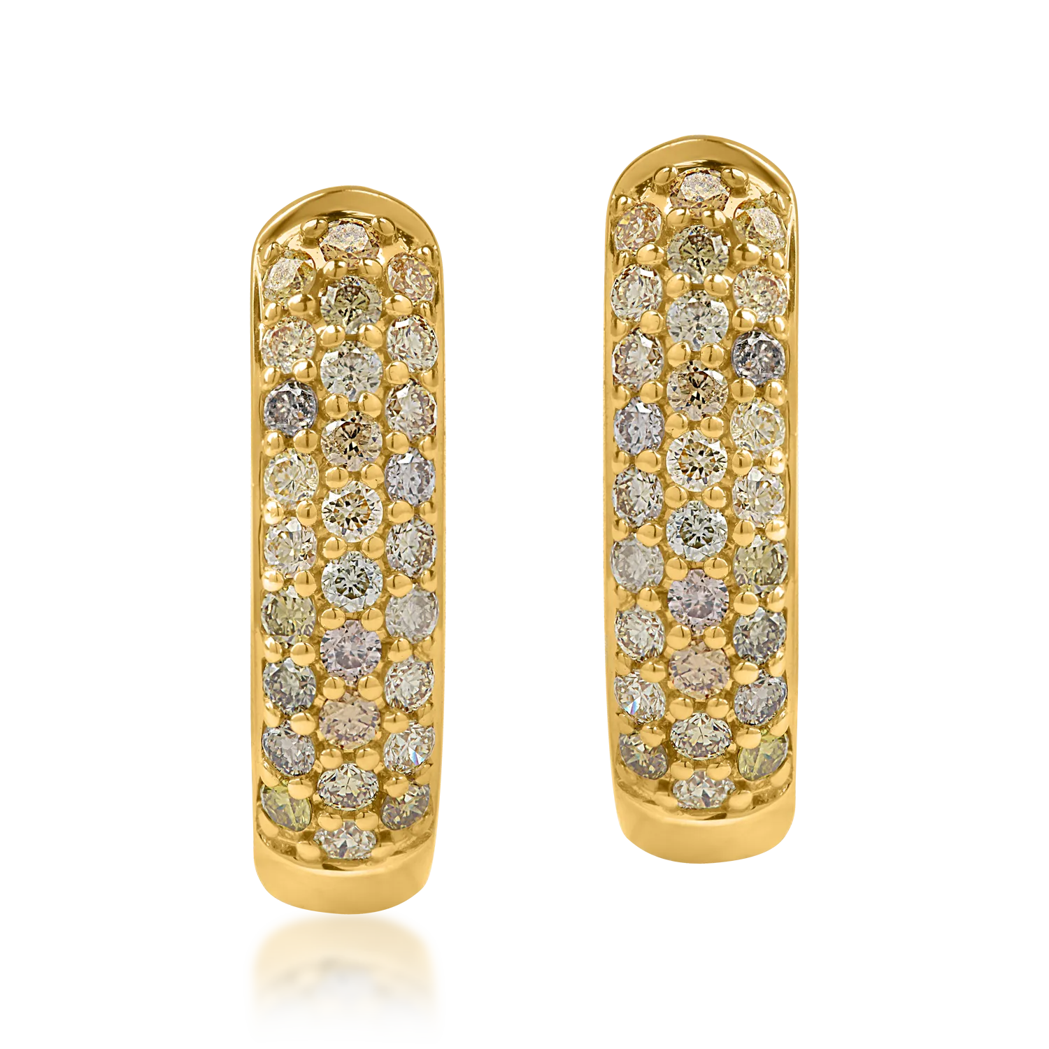 Poarta bijuteriile care iti dau incredere in tine. Autenticitatea designului si rafinamentul cerceilor rotunzi din aur galben cu diamante multicolore de 0.75ct dau o nota eleganta oricarui stil. TEILOR exploreaza feminitatea in toate formele ei.