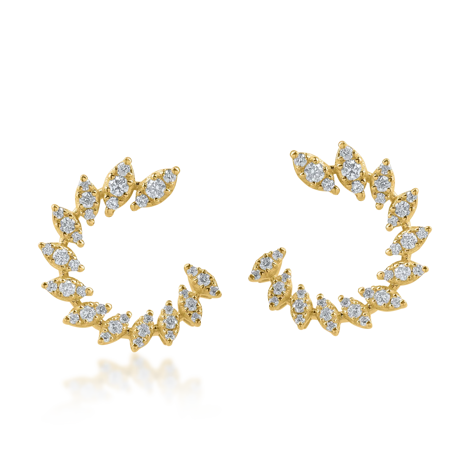 Bijuteriile vorbesc despre tine. Tu spune-ti povestea cu noi. Autenticitatea designului si rafinamentul cerceilor stud din aur galben cu diamante de 0.84ct dau o nota eleganta oricarui stil. Completeaza orice tinuta si vorbeste despre latura ta feminina. In fiecare zi. Cu fiecare pas.