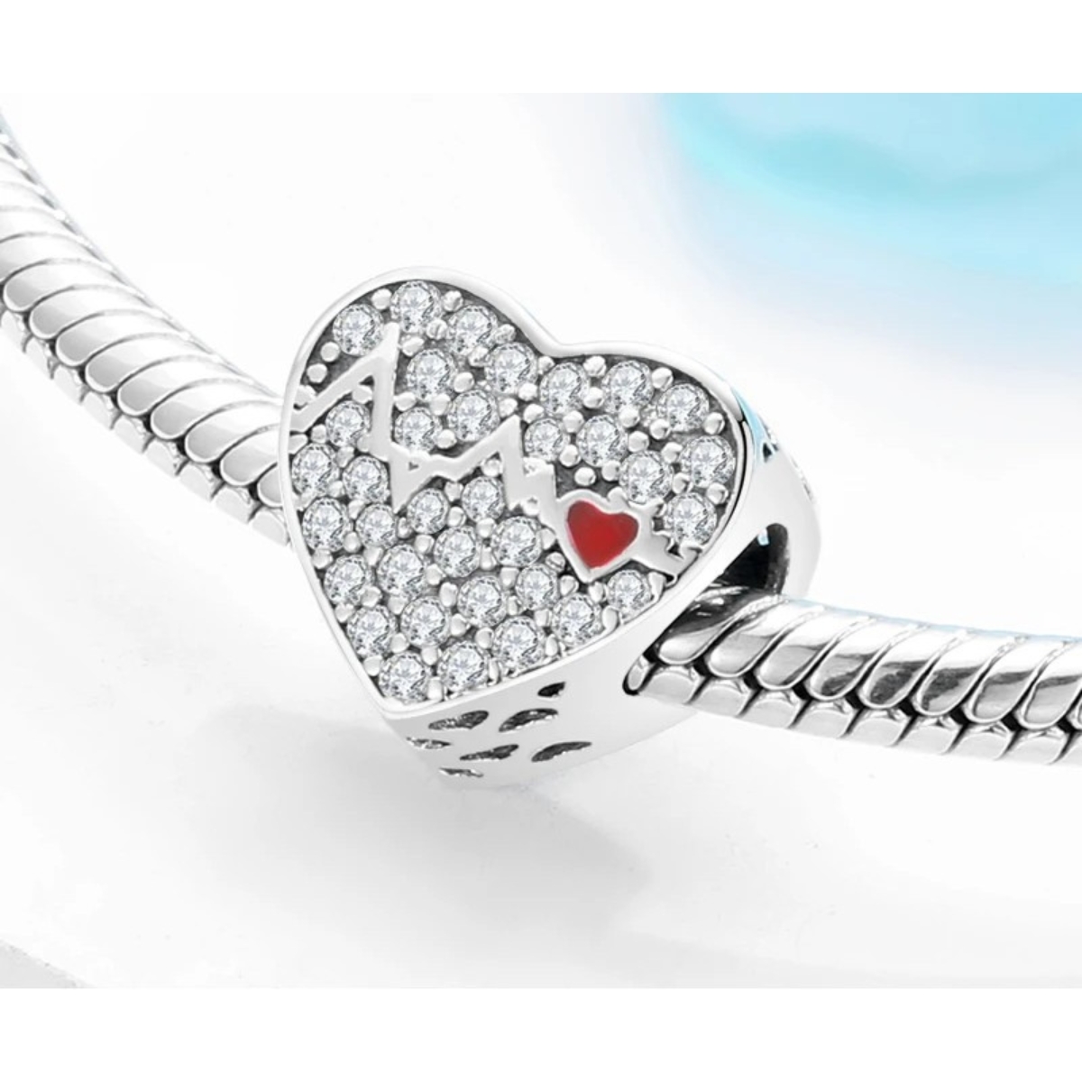 charm/talisman de argint 925, placat cu rodiu; dimensiune: 1.1 cm; greutate: 1.77 g; material piatra: zirconiu; finisaje premium de lux. Ingrijirea bijuteriilor : Dupa purtare va recomandam sa pastrati bijuteriile in ambalajul original sau intr-un saculet dintr-un material moale, pentru a evita zgarieturile. Pentru a le reda stralucirea este necesar sa le stergeti cu o carpa moale sau cu solutii speciale pentru curatarea argintului. Inainte de culcare, baie sau activitati similare in care bijuteriile ar intra in contact cu apa, produse cosmetice, detergenti, corozive sau chimice, scoateti bijuteriile deoarece aceste produse pot decolora sau modifica stralucirea. Evitati loviturile bruste deoarece ar putea cauza zgarieturi, ciobiri si alte daune si nu lipiti cristalele dezlipite cu adezivi tip super glue, picatura sau orice alt tip.