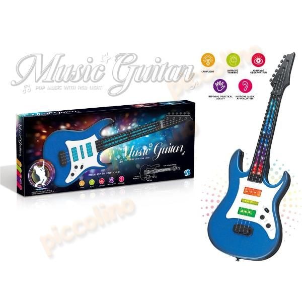 Jucarie electrica cu muzica si lumini Prezinta sunet chitara simplu in acord xEEn buclx103 secvenx21Bialx103 LED-uri care clipesc ritmic Compozitie material plasticTaxa verde: 0.69 lei (inclusa in pret)