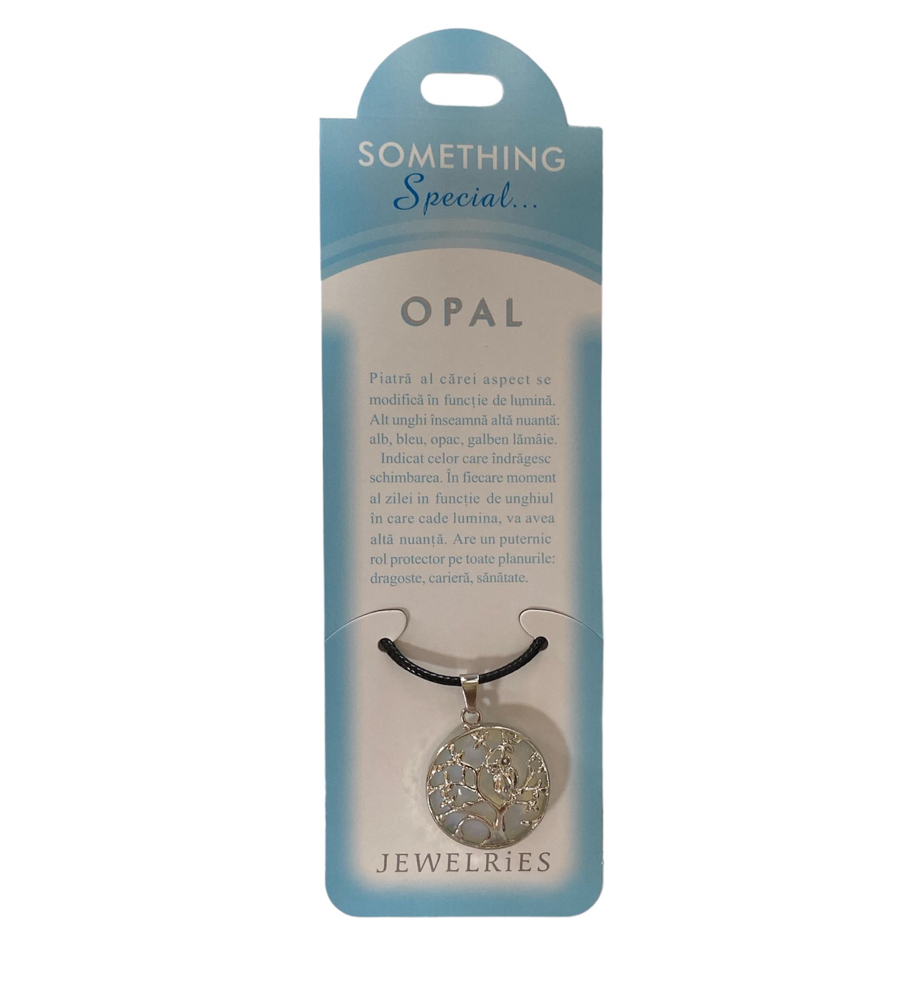 Colier cu pom si bufnita din piatra semipretioasa OPAL pe carton, diametru: 2.5 cm