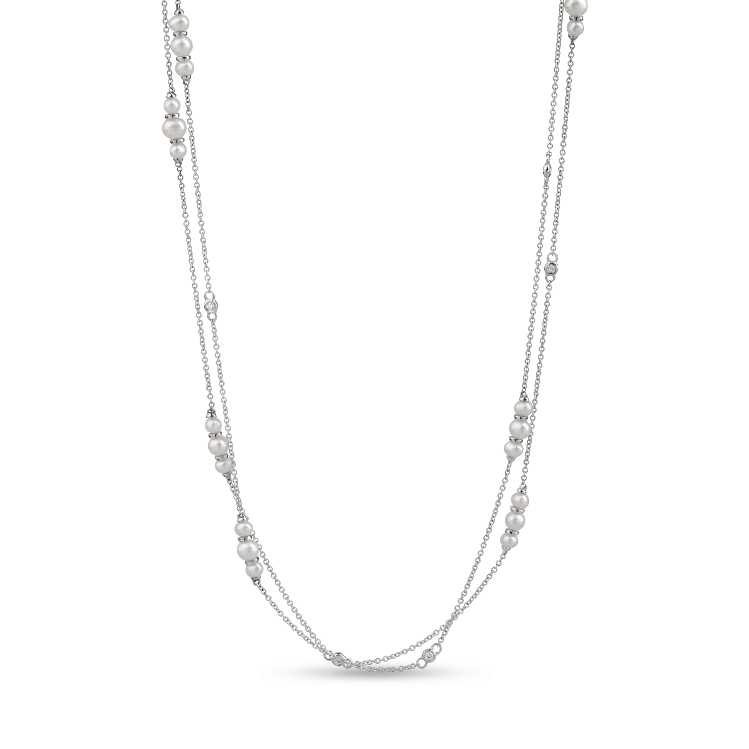 Fii fermecatoare fara prea mult efort. Detaliile atent lucrate fac din acest colier minimalist din aur alb cu diamante de 0.08ct si perle de cultura accesoriul tau cheie pentru un look chic si memorabil. Fii de neuitat cu TEILOR.