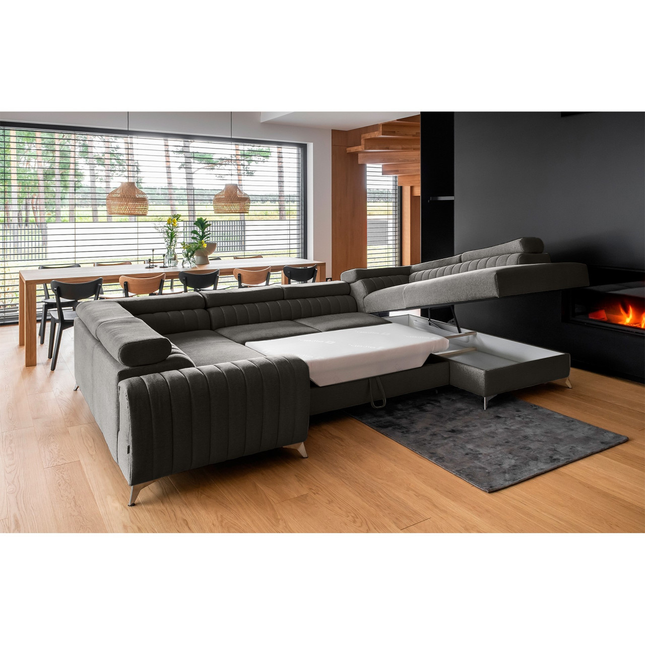 Louis este un colțar confortabil, elegant și funcțional. Are dimensiunile de 347x202x92 cm, oferind spațiu generos pentru relaxare. Șezutul este realizat din arcuri ondulate și o combinație de spumă T30 și spumă HR, care se adaptează foarte bine la forma corpului și sporesc senzația de confort. Colțarul este prevăzut cu patru tetiere reglabile, ladă de depozitare și o suprafață de dormit de 210x125 cm, ce se extinde rapid și ușor datorită mecanismului tip „delfin”. Dimensiuni: Lungime: 347 cm Adâncime: 202 cm Adâncimea șezutului: 56 cm Înălțimea șezutului: 45 cm Înălțime: 92 cm Suprafața de dormit: 254x123 cm Produsul nu este montat, montarea este rapidă și ușoară. Produsul este personalizabil, culoarea și materialul se aleg pe baza paletarelor la cererea clientului. Prețul poate suferi modificări în funcție de grupa de material aleasă.