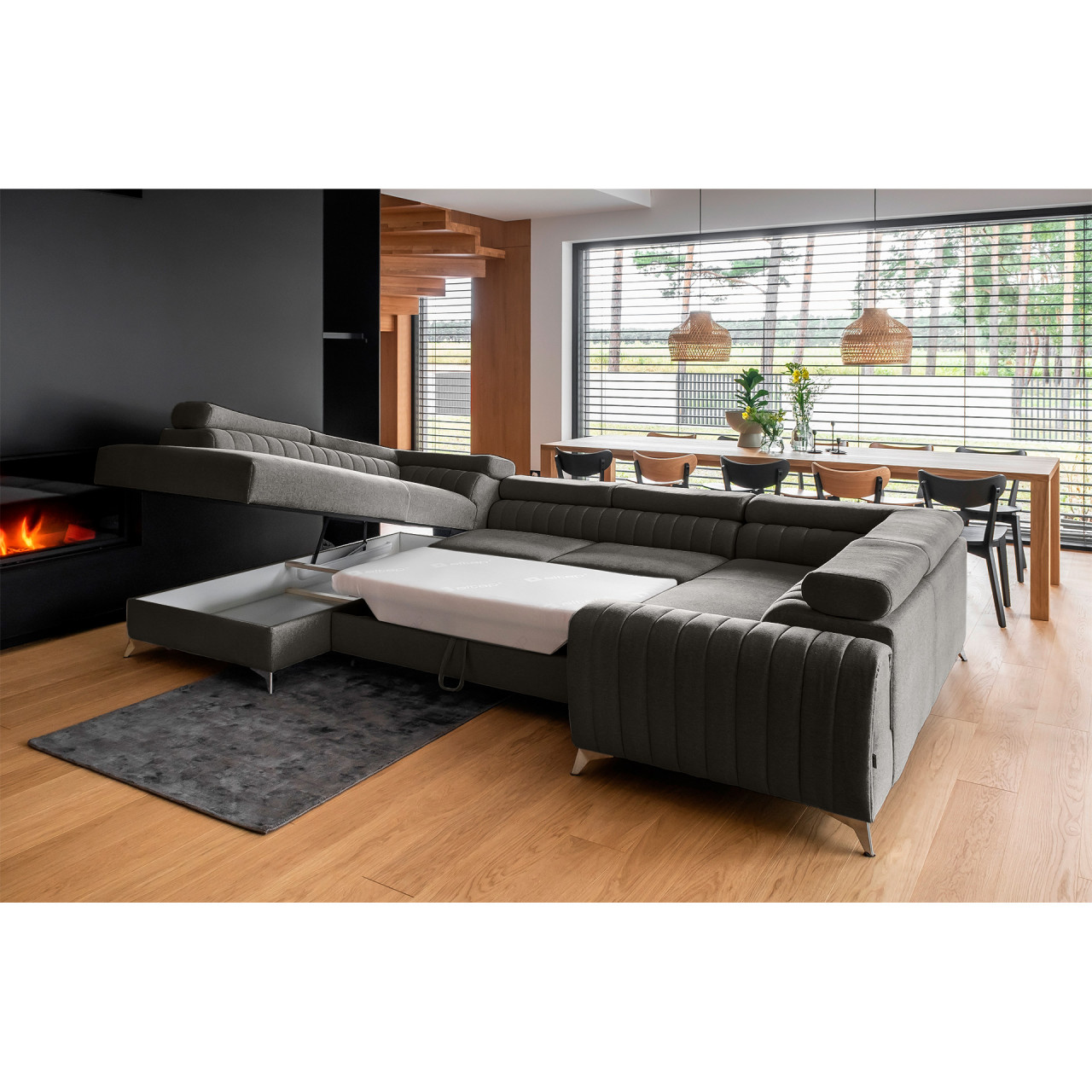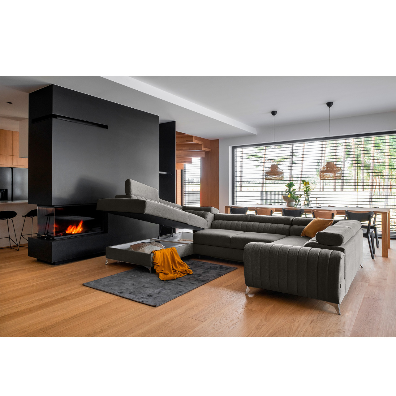 Louis este un colțar confortabil, elegant și funcțional. Are dimensiunile de 347x202x92 cm, oferind spațiu generos pentru relaxare. Șezutul este realizat din arcuri ondulate și o combinație de spumă T30 și spumă HR, care se adaptează foarte bine la forma corpului și sporesc senzația de confort. Colțarul este prevăzut cu patru tetiere reglabile, ladă de depozitare și o suprafață de dormit de 210x125 cm, ce se extinde rapid și ușor datorită mecanismului tip „delfin”. Dimensiuni: Lungime: 347 cm Adâncime: 202 cm Adâncimea șezutului: 56 cm Înălțimea șezutului: 45 cm Înălțime: 92 cm Suprafața de dormit: 254x123 cm Produsul nu este montat, montarea este rapidă și ușoară. Produsul este personalizabil, culoarea și materialul se aleg pe baza paletarelor la cererea clientului. Prețul poate suferi modificări în funcție de grupa de material aleasă.