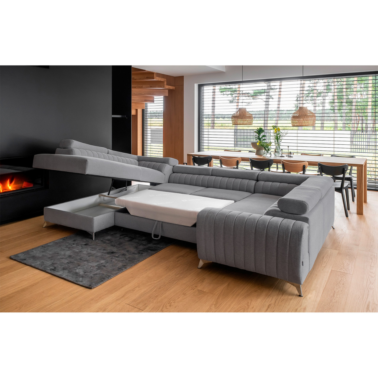 Louis este un colțar confortabil, elegant și funcțional. Are dimensiunile de 347x202x92 cm, oferind spațiu generos pentru relaxare. Șezutul este realizat din arcuri ondulate și o combinație de spumă T30 și spumă HR, care se adaptează foarte bine la forma corpului și sporesc senzația de confort. Colțarul este prevăzut cu patru tetiere reglabile, ladă de depozitare și o suprafață de dormit de 210x125 cm, ce se extinde rapid și ușor datorită mecanismului tip „delfin”. Dimensiuni: Lungime: 347 cm Adâncime: 202 cm Adâncimea șezutului: 56 cm Înălțimea șezutului: 45 cm Înălțime: 92 cm Suprafața de dormit: 254x123 cm Produsul nu este montat, montarea este rapidă și ușoară. Produsul este personalizabil, culoarea și materialul se aleg pe baza paletarelor la cererea clientului. Prețul poate suferi modificări în funcție de grupa de material aleasă.