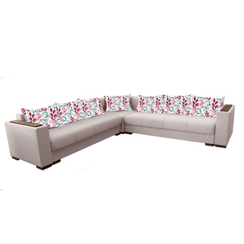 Coltarul Solis MAX 3+3 este un coltar modern conceput pentru un stil de viata activ fiind foarte usor de extins si de strans. Coltarul Solis MAX 3+3 este extensibil putand fi utilizat zilnic atat ca si coltar pentru petrecerea timpului liber cat si ca un pat generos pe timpul noptii. Se pot extinde ambele parti pe rand. Suprafata de dormit este 140 * 215 cm. Coltarul Solis MAX 3+3 are saltele cu plasa de arcuri (tip Relaxa) si burete de densitate mare pentru o rezistenta sporita in timp, iar datorita suprafetei plane care se formeaza atunci cand se extinde asigura un somn odihnitor pe timpul noptii. Atat coltarul cat si pernele sunt tapitate cu stofa. Coltarul Solis MAX 3+3 are doua lazi de depozitare generoase foarte practice atat pentru lenjeria de pat, cat si pentru diverse obiecte pe care le folositi rar. Sezutul in varianta stransa are o latime generoasa de 70 cm si poate fi folosit de o persoana in timpul zilei pentru un pui de somn fara a mai fi nevoie sa extindeti Coltarul. Coltarul Solis MAX 3+3 are 8 perne pufoase foarte utile pentru o sedere cat mai confortabila pe coltar, dar si pentru o pata de culoare. Coltarul Solis MAX 3+3 este foarte usor de montat avand elemente de cuplare rapide. Coltarul Solis MAX 3+3 este prevazut cu un peretar care ramane la perete atunci cand coltarul este extins si este folosit pentru dormit. Peretarul protejeaza peretele si asigura un confort sporit pentru persoana care va dormi la perete. Cusaturile de pe sezutul coltarului dau o eleganta aparte produsului. Pe bratele coltarului se afla ornamente din MDF wenge care pot fi folosite ca suport pentru pahare. Dimensiuni coltar Solis MAX 3+3 strans: Lungime: 3081 mm Adancime: 3081 mm Inaltime: 720 mm Suprafata de dormitor coltar Solis MAX 3+3: 1400 x 2150 mm