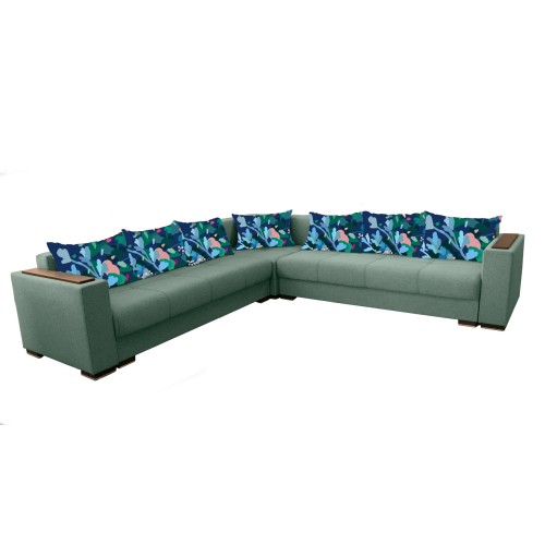 Coltarul Solis MAX 3+3 este un coltar modern conceput pentru un stil de viata activ fiind foarte usor de extins si de strans. Coltarul Solis MAX 3+3 este extensibil putand fi utilizat zilnic atat ca si coltar pentru petrecerea timpului liber cat si ca un pat generos pe timpul noptii. Se pot extinde ambele parti pe rand. Suprafata de dormit este 140 * 215 cm. Coltarul Solis MAX 3+3 are saltele cu plasa de arcuri (tip Relaxa) si burete de densitate mare pentru o rezistenta sporita in timp, iar datorita suprafetei plane care se formeaza atunci cand se extinde asigura un somn odihnitor pe timpul noptii. Atat coltarul cat si pernele sunt tapitate cu stofa. Coltarul Solis MAX 3+3 are doua lazi de depozitare generoase foarte practice atat pentru lenjeria de pat, cat si pentru diverse obiecte pe care le folositi rar. Sezutul in varianta stransa are o latime generoasa de 70 cm si poate fi folosit de o persoana in timpul zilei pentru un pui de somn fara a mai fi nevoie sa extindeti Coltarul. Coltarul Solis MAX 3+3 are 8 perne pufoase foarte utile pentru o sedere cat mai confortabila pe coltar, dar si pentru o pata de culoare. Coltarul Solis MAX 3+3 este foarte usor de montat avand elemente de cuplare rapide. Coltarul Solis MAX 3+3 este prevazut cu un peretar care ramane la perete atunci cand coltarul este extins si este folosit pentru dormit. Peretarul protejeaza peretele si asigura un confort sporit pentru persoana care va dormi la perete. Cusaturile de pe sezutul coltarului dau o eleganta aparte produsului. Pe bratele coltarului se afla ornamente din MDF wenge care pot fi folosite ca suport pentru pahare. Dimensiuni coltar Solis MAX 3+3 strans: Lungime: 3081 mm Adancime: 3081 mm Inaltime: 720 mm Suprafata de dormitor coltar Solis MAX 3+3: 1400 x 2150 mm