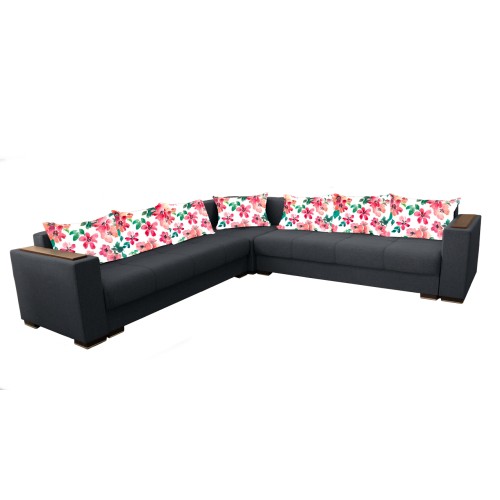 Coltarul Solis MAX 3+3 este un coltar modern conceput pentru un stil de viata activ fiind foarte usor de extins si de strans. Coltarul Solis MAX 3+3 este extensibil putand fi utilizat zilnic atat ca si coltar pentru petrecerea timpului liber cat si ca un pat generos pe timpul noptii. Se pot extinde ambele parti pe rand. Suprafata de dormit este 140 * 215 cm. Coltarul Solis MAX 3+3 are saltele cu plasa de arcuri (tip Relaxa) si burete de densitate mare pentru o rezistenta sporita in timp, iar datorita suprafetei plane care se formeaza atunci cand se extinde asigura un somn odihnitor pe timpul noptii. Atat coltarul cat si pernele sunt tapitate cu stofa. Coltarul Solis MAX 3+3 are doua lazi de depozitare generoase foarte practice atat pentru lenjeria de pat, cat si pentru diverse obiecte pe care le folositi rar. Sezutul in varianta stransa are o latime generoasa de 70 cm si poate fi folosit de o persoana in timpul zilei pentru un pui de somn fara a mai fi nevoie sa extindeti Coltarul. Coltarul Solis MAX 3+3 are 8 perne pufoase foarte utile pentru o sedere cat mai confortabila pe coltar, dar si pentru o pata de culoare. Coltarul Solis MAX 3+3 este foarte usor de montat avand elemente de cuplare rapide. Coltarul Solis MAX 3+3 este prevazut cu un peretar care ramane la perete atunci cand coltarul este extins si este folosit pentru dormit. Peretarul protejeaza peretele si asigura un confort sporit pentru persoana care va dormi la perete. Cusaturile de pe sezutul coltarului dau o eleganta aparte produsului. Pe bratele coltarului se afla ornamente din MDF wenge care pot fi folosite ca suport pentru pahare. Dimensiuni coltar Solis MAX 3+3 strans: Lungime: 3081 mm Adancime: 3081 mm Inaltime: 720 mm Suprafata de dormitor coltar Solis MAX 3+3: 1400 x 2150 mm