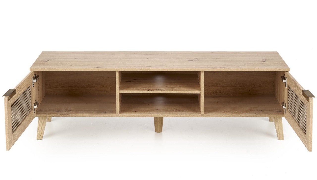 Comoda TV Borneo reprezintă alegerea ideală pentru cei care caută o soluție simplă și elegantă pentru livingul lor. Cu un design atemporal și rafinat, aceasta este ușor de integrat în orice ambient. Colecția Borneo se remarcă prin versatilitatea sa, potrivindu-se perfect unei game variate de stiluri interioare, de la cele moderne și contemporane până la cele clasice și tradiționale. Dimensiuni: Lungime: 150 cm Adâncime: 40 cm Înălțime: 45 cm Detalii tehnice: Materiale: placă de mobilier laminată / MDF laminat / placa HDF laminată / polipropilenă, culoare: stejar artizan - natur Produsul nu este montat, este destinat pentru auto-asamblare. Instrucțiunile de montaj vin în colet.