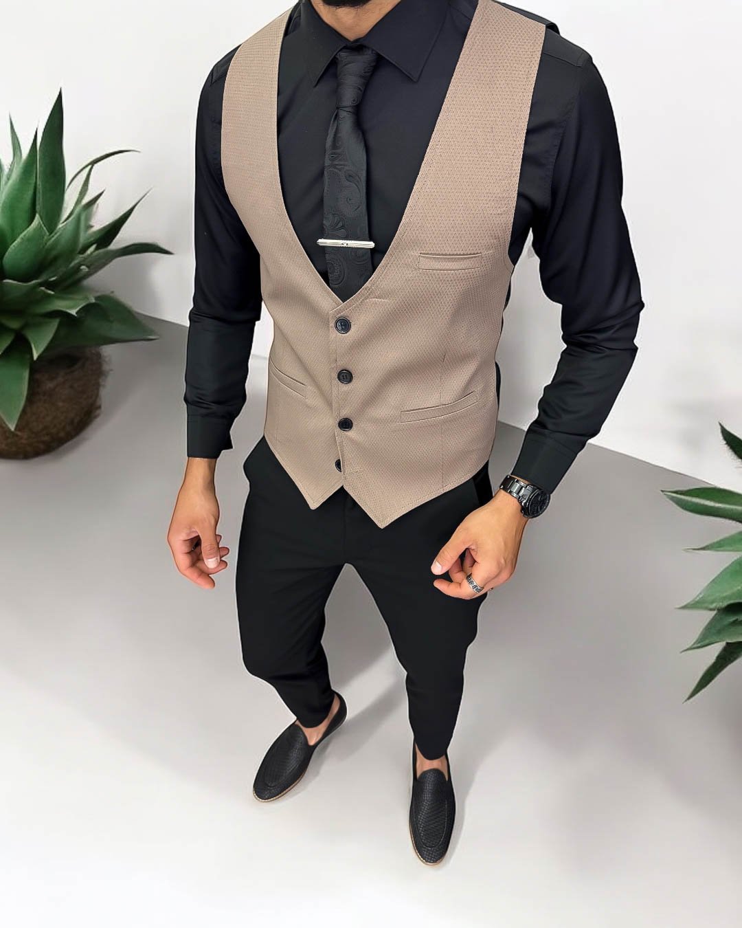 Compleu barbati Vesta + Pantaloni Compleu barbati office - compleu fashion - compleu elegant - compleu nunta - compleu botez Compleu Slim fit Material pantaloni conici: 63% poliester 35% vascoza 2% elastanAccesoriul nu este inclusCompleul cuprinde urmatoarele piese: Vesta Pantaloni Manechinul are 180 si 70kg si a pozat cu marimea 42. Dimensiune pantaloni Talie (cm) Lungime (cm) 30 39 102 31 40.5 102 32 42 102 33 43.5 102 34 45 102 36 46.5 102 Dimensiune vesta Talie (cm) Lungime (cm) 30 45 65 31 47 65 32 49 66 33 51 67 34 53 67 36 55 68