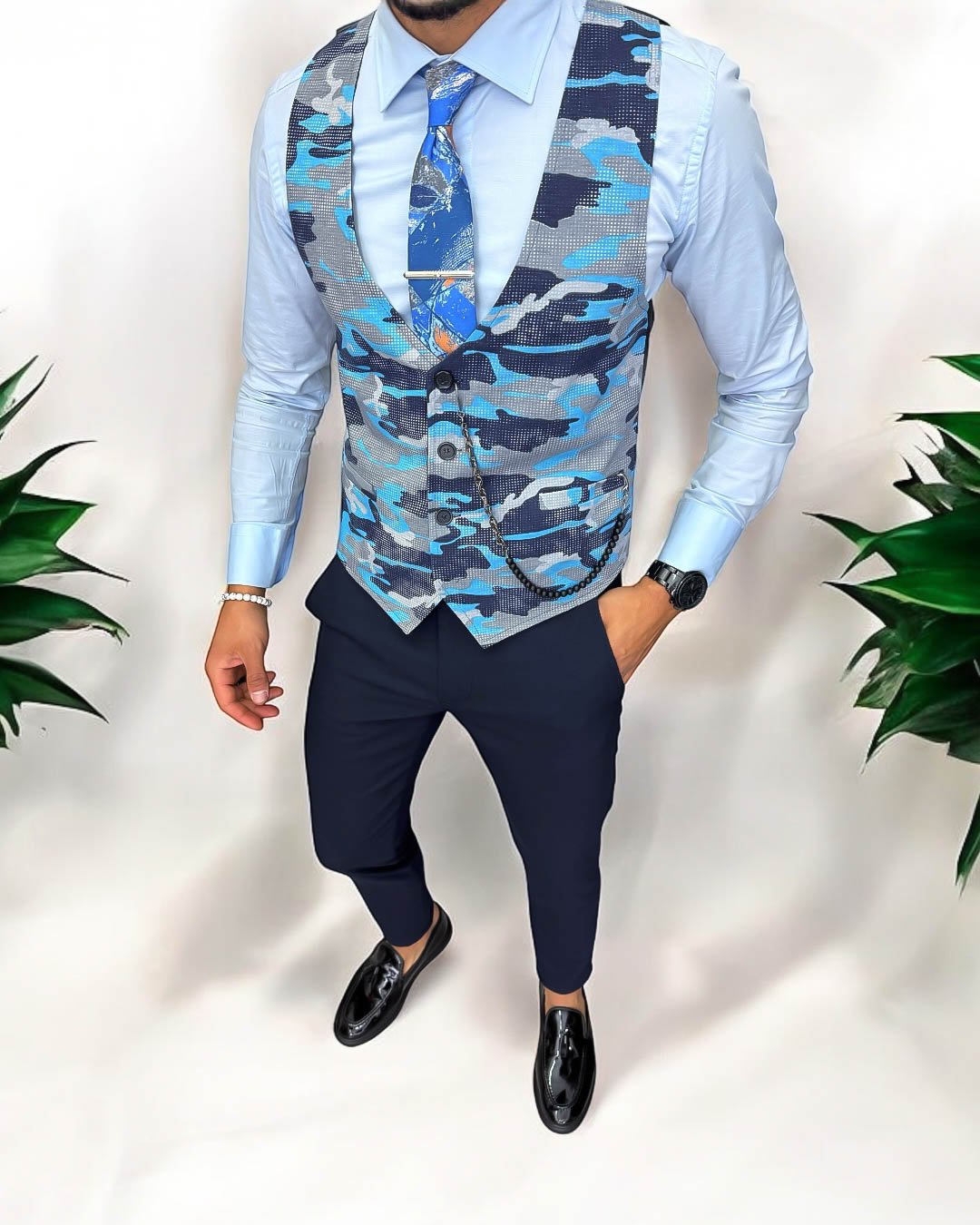 Compleu barbati Vesta + Pantaloni Compleu barbati office - compleu fashion - compleu elegant - compleu nunta - compleu botez Compleu Slim fit Material pantaloni conici: 63% poliester 35% vascoza 2% elastanAccesoriul nu este inclusCompleul cuprinde urmatoarele piese: Vesta Pantaloni Manechinul are 180 si 70kg si a pozat cu marimea 42. Dimensiune pantaloni Talie (cm) Lungime (cm) 30 39 102 31 40.5 102 32 42 102 33 43.5 102 34 45 102 36 46.5 102 Dimensiune vesta Talie (cm) Lungime (cm) 30 45 65 31 47 65 32 49 66 33 51 67 34 53 67 36 55 68