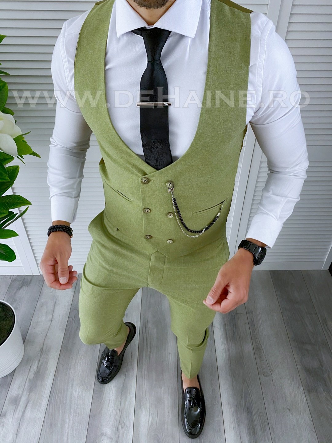 Compleu barbati Vesta + Pantaloni Compleu barbati office - compleu fashion - compleu elegant - compleu nunta - compleu botez Compleu Slim fit Material pantaloni conici: 63% poliester 35% vascoza 2% elastanAccesoriul nu este inclusCompleul cuprinde urmatoarele piese: Vesta Pantaloni Manechinul are 180 si 70kg si a pozat cu marimea 42. Dimensiune pantaloni Talie (cm) Lungime (cm) 30 39 102 31 40.5 102 32 42 102 33 43.5 102 34 45 102 36 46.5 102 Dimensiune vesta Talie (cm) Lungime (cm) 30 45 65 31 47 65 32 49 66 33 51 67 34 53 67 36 55 68