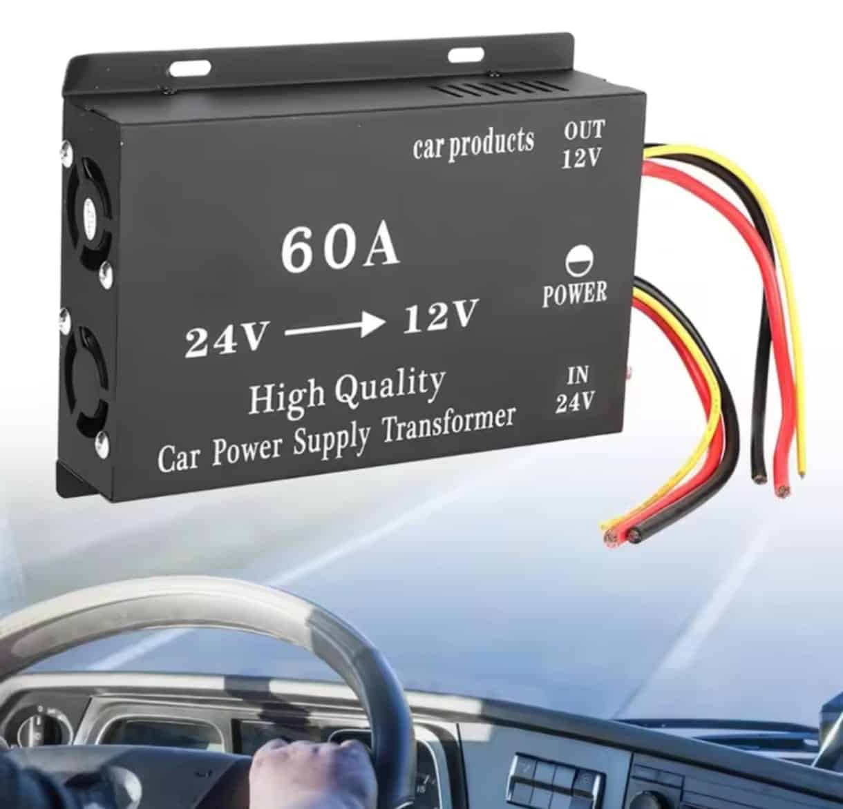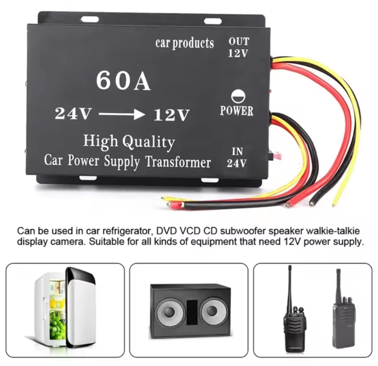 Asigura alimentarea sigura si stabila a dispozitivelor din vehiculul tau cu acest convertor coborator de tensiune 24V - 12V. Proiectat pentru a transforma eficient tensiunea, este solutia perfecta pentru soferii de camioane, posesorii de rulote sau alte vehicule comerciale care necesita o sursa constanta si fiabila de alimentare./nSpecificatii Tehnice/n/nMaterial: Plastic rezistent la socuri si umiditate./nDimensiuni: Aproximativ 16x13.6 cm / 6.3x5.4 inch./nCuloare: Negru./nPutere nominala: 600W./nPutere maxima: 720W./nCapacitate curent: 60A./nTopologie circuit: Full bridge./nEficienta invertorului: 90%./nFrecventa de iesire: 50HZ./nReglarea sarcinii: 0.1%./n/nCaracteristici/n/nConvertire eficienta a tensiunii: Transformarea tensiunii de 24V intr-o iesire stabila de 12V, ideala pentru o gama variata de dispozitive din rulote si camioane./nFunctie de memorie: Retine setarile anterioare, oferind confort si usurinta in utilizare./nPerformanta ridicata: Cu o eficienta de 90%, minimizeaza pierderile de energie si optimizeaza consumul./nSiguranta avansata: Protejeaza impotriva fluctuatiilor de curent care pot afecta dispozitivele sensibile./nDesign compact si portabil: Perfect pentru spatii restranse, fiind usor de instalat in orice tip de vehicul./nRezistent la umiditate si conditii dificile: Proiectat pentru utilizare pe termen lung, chiar si in medii solicitante./n/nAvantaje/n/nCompatibilitate extinsa: Ideal pentru rulote, camioane si alte vehicule comerciale, dar si pentru autoturisme cu echipamente avansate./nProtectie sporita: Circuit integrat de siguranta impotriva supraincalzirii si suprasolicitarii./nPerformanta fiabila: Materiale de calitate superioara si tehnologie avansata pentru utilizare indelungata./nAplicatii diverse: Suporta alimentarea sistemelor audio, luminilor LED, camerelor de marsarier si altor accesorii electronice./n/nUtilizari Recomandate/n/nAlimentarea sistemelor de iluminat LED si a proiectoarelor in rulote si camioane./nSuport pentru sisteme audio performante si alte dispozitive electronice./nAlimentarea camerelor de marsarier, sistemelor GPS si altor echipamente esentiale pentru soferii de cursa lunga./n/nConvertorul Coborator de Tensiune 24V - 12V este indispensabil pentru un stil de viata confortabil si sigur in vehiculele tale preferate.