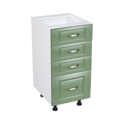 Dimensiuni (l x h x a): 400 x 820 x 481 mm. Culoare: Alb cu verde. Materiale folosite: Pal melaminat, fete sertare din MDF infoliat, manere metalice cu insertie portelan, glisiere metal, picioare reglabile plastic 100 mm. *Nota: Schita de montaj nu se afla in interiorul coletului intre piesele de mobila. Schita de montaj o sa fie atasata pe spatele facturii.