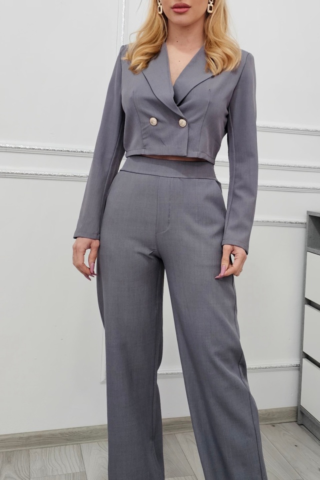 Alege un look modern și rafinat cu costumul Elysian , o combinație perfectă între stil casual și eleganță. Acest set este ideal pentru femeile care își doresc o ținută versatilă, ce poate fi purtată atât la birou, cât și la evenimente relaxate sau întâlniri de zi cu zi. Croiala impecabilă și detaliile atent alese transformă acest costum într-o piesă esențială în garderoba ta. Sacoul scurt cu butoni aurii , adaugă o notă de rafinament și stil, creând un efect vizual deosebit. Designul său modern pune în valoare talia și poate fi purtat atât cu pantalonii din set, cât și cu alte piese vestimentare pentru un look personalizat. În același timp, pantalonii wide leg , cu o croială fluidă, oferă un plus de confort și alungesc silueta, fiind extrem de versatili și ușor de integrat în diverse ținute. Banda elastică în partea din spate asigură o potrivire perfectă, adaptându-se formei corpului pentru un confort maxim pe tot parcursul zilei. Acest costum este perfect pentru zilele în care vrei să fii elegantă, dar să te simți și relaxată. Nuanța gri antracit conferă costumului Elysian un aer modern, versatil și rafinat, fiind ideal pentru orice ocazie. Această culoare neutră emană profesionalism și eleganță discretă, putând fi ușor accesorizată pentru un look casual-chic sau sofisticat. Perfect pentru ținute de zi sau de seară, griul antracit adaugă profunzime și stil garderobei tale, rămânând mereu o alegere atemporală. Puncte de impact: ✔ Culoarea gri, neutra – Se potrivește perfect atât în ținute elegante, cât și casual. ✔ Material plăcut la purtare – Ușor, respirabil și confortabil, potrivit pentru întreaga zi. ✔ Stil echilibrat între casual și elegant – Poate fi purtat la birou, evenimente sau ieșiri relaxate. Caracteristici costum: - sacou scurt si croi cambrat - inchidere cu butoni aurii - buretei suport la umeri pentru o liniatura optima - maneca lunga cu o croiala clasica - revere ample si ascutite - pantaloni largi cu talie inalta si fara inchidere - model prezent in mai multe variante cromatice - Marime universala S/M compatibila cu masura S sau masura M! Ingrijire : Se recomanda curatarea profesionala! Compozitie material: 96% poliester, 4% elastan Eticheta produsului conține informații esențiale referitoare la întreținerea și spălarea corectă a articolelor vestimentare. Imaginile Fashionforyou au caracter informativ, iar nuanta, tonul si intensitatea culorii pot varia in functie de monitor/ecran telefon.
