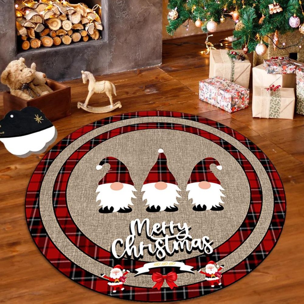 Covor antiderapant cu tematica de Craciun Covor antiderapant parchet si gresie Dimensiune diametru 100 cm Suprafete: parchet si gresie Material: 30% Bumbac, 70% Poliamina Antibacterian si foarte rezistent la uzura Se poate spala manual sau la masina la temperatura de 5 - 30 Grade C