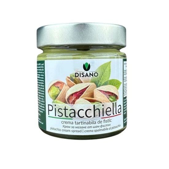 Crema tartinabila de fistic DisanoCrema siciliana de fistic, luxoasă și cremoasă, ideală pentru prăjituri, produse de patiserie și delicii gourmet.Ingrediente: Fistic 20%, ulei de floarea soarelui, lapte praf degresat 10%, zer, unt de cacao, amidon, lecitină de floarea soarelui, sare. Fara ulei de palmier, fara gluten.Valori Nutritionale: valorile medii se referă la 100 g de produs)- Energie: 591,5 Kcal (2465 Kj)- Lipide: 42,5 g - din care acizi grași saturați: 12,1 g- Carbohidrați: 46,9 g - din care zaharuri: 41,9 g- Proteine: 8,0 g- Fibre: 2,6 g- Sare: 0,2 gTermen de valabilitate: 12 luni de la data producției.Recomandare de depozitare: A se păstra la temperatura camerei. După deschidere, păstrați în frigider și consumați în 3-5 zile.