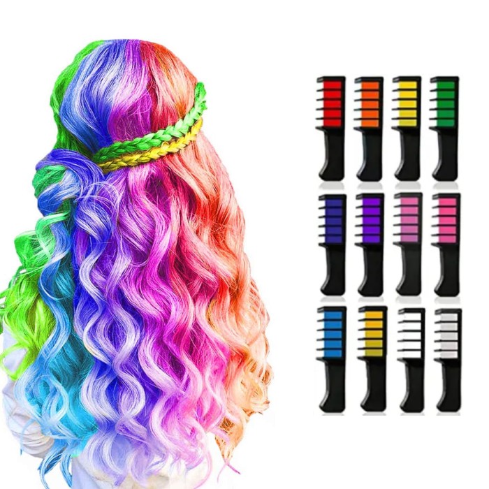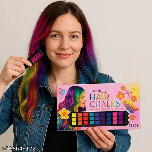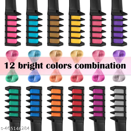 Creta colorata pentru par Set 12 nuante - Vopsit Temporar 12 crete de par curcubeu speciale de colorat parul sunt o modalitate de a revigora rapid coafura. Pur si simplu alegeti firele de par si colorati-le si le veti da un aer proaspat. Aceste pieptene pentru culoarea parului este fabricat din ingrediente non-alergene si netoxice. Este solubil in apa si poate fi usor spalat cu sampon obisnuit. Cu designul pieptenei fixe, acestea sunt usor de aplicat pe parul tau de sus in jos, fara sa-ti pateze mainile. Pieptene cu creta de culoare a parului schimba culoarea parului in cateva minute, este adesea folosit pentru petrecere, cosplay, ziua de nastere a copiilor, Halloween, Craciun, adunarea prietenilor, activitatea din campusul copiilor sau colorarea parului cainilor etc. Efectul de colorare depinde de culoarea si calitatea parului – Aceste creta de par se aplica foarte usor pe parul deschis, dar este putin dificil pentru parul intunecat, mai intai puteti pulveriza parul cu apa, ceea ce face mai bine sa aplicati culoarea pe par.Creta colorata pot fi aplicate atat pe parul umed cat si pe parul uscat, sunt non-toxice si se spala ussor prin samponare.