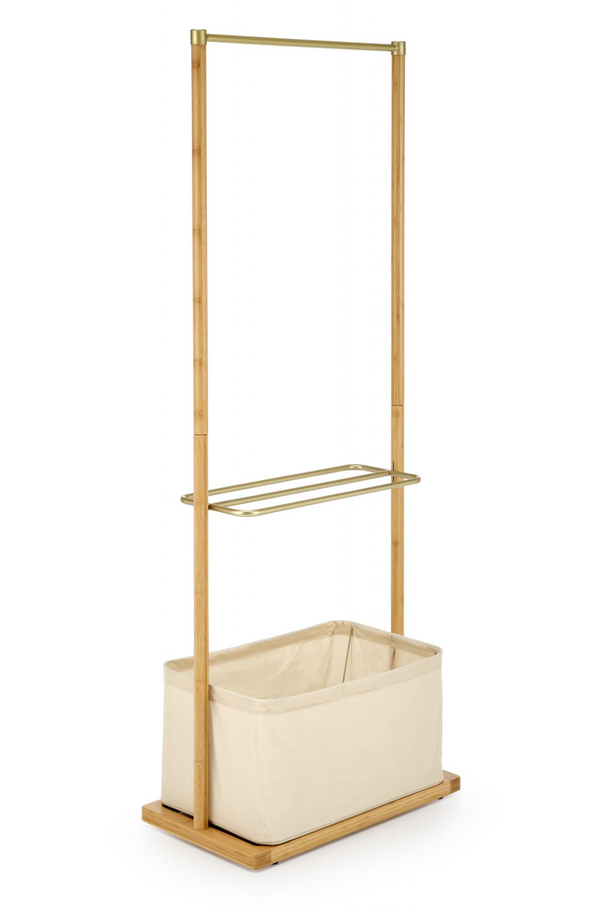 Cuierul WU31 adaugă un aer sofisticat oricărei încăperi. Structura sa robustă, dar elegantă, este concepută pentru a susține cu ușurință haine, pălării, genți sau alte accesorii, oferind soluția ideală pentru menținerea ordinii în hol, dormitor sau birou. Cuierul WU31 impresionează nu doar prin funcționalitatea sa, ci și prin estetica sa minimalistă. Dimensiuni: Lungime: 60 cm Adâncime: 35 cm Înălțime: 166 cm Detalii tehnice: material: lemn masiv - bambus / stofă / oțel vopsit cu pulbere, culoare: natur - bej - auriu Produsul nu este montat, este destinat pentru auto-asamblare. Instrucțiunile de montaj vin în colet.