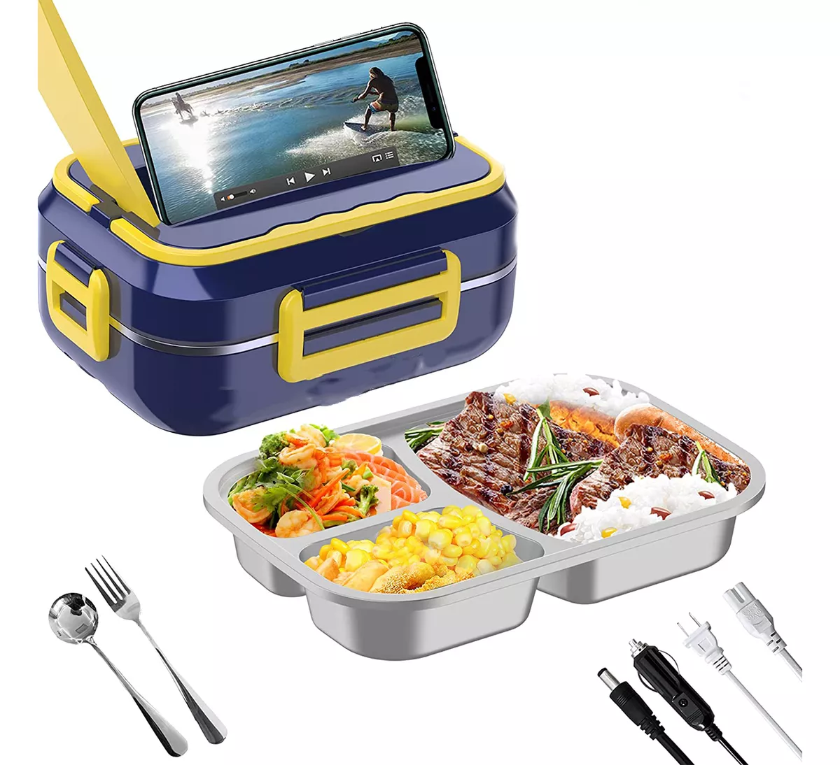 Cutie electrica pentru pranz Otel inoxidabil, 1.5 Litri, Albastru Caserola electrica pentru alimente Forma Dreptunghiulara Capacitate 1.5 l Material Inox Culoare Albastru Compatibil masina de spalat vase Cutie de pranz electrica Otel inoxidabil, 1.5l, Albastru inchis Bucurati-va de o masa de casa asa cum a fost menita sa fie, calda si proaspata. Incalzitorul electric de mancare pentru cutie de pranz este potrivit pentru calatorii cu masina, serviciu si multe altele este mesele acasa din mers. Cutia de pranz cu incalzire automata cu dubla utilizare include doua prize. Alimentare 220V pentru mesele cu pranz incalzit la birou/scoala, si adaptor 12V-24V pentru un cuptor cu microunde portabil pentru plimbari cu masina si camionul. Incalzire rapida - Cutia de pranz electrica cu o putere de 40W va ajuta sa eliminati timpul lung de asteptare. Cutia de pranz portabila pentru incalzirea alimentelor poate incalzi in cel mai scurt timp o masa sanatoasa si fierbinte. Conectati cablul si veti obtineti un pranz mai cald. Cutiile de pranz incalzite au o capacitate de depozitare de 1,5 L pentru adultii cu pofta de mancare. Fiecare incalzitor portabil de alimente contine o placa din otel inoxidabil 304 de calitate alimentara. Incalzitor de mancare este perfect pentru calatoriile cu masina. Usor de curatat, cu tava detasabila - Se poate spala in masina de spalat vase. Este rezistent la temperaturi ridicate, furculita si lingura incluse.