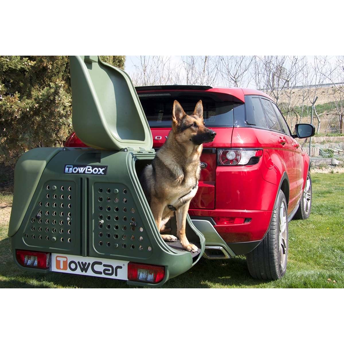 TowBox V2 Dog Negru este varianta TowBox V2 Negru adaptata la transportul animalelor de companie de o maniera comoda si sigura, fara a periclita siguranta soferului si care evita eventualele daune produse de animale in timpul transportului (distrugerea tapiteriei, mirosuri neplacute, paraziti etc.). Spre deosebire de TowBox V2 , este prevazuta cu orificii de aerisire. De asemenea, spatiul interior poate fi accesorizat cu separator, cusca, podea anti-umezeala. TowBox V2 Dog Negru este solutia ideala pentru vanatorii care trebuie sa-si transporte in conditii de siguranta cainele de vanatoare, dar poate fi folosita si pentru transportarea ocazionala a altor animale (pasari mici, miei, iezi etc.). TowBox V2 Dog este certificata medical-veterinar la nivel UE pentru transportul animalelor. Alte caracteristici: pozitionarea joasa usureaza mult operatiunea de incarcare/descarcare a bagajelor. este prevazuta cu 2 usi laterale de acces, oferind un acces facil al incarcaturii din ambele parti. amplasarea in spatele masinii fereste cutia de curentii de aer, nefiind astfel efectata aerodinamica masinii si favorizand totodata economia de combustibil. nu creste inaltimea autovehicului (ceea ce ar fi putut sa va limiteze accesul in garaje sau parcari subterane). nu exista nicio nicio restrictie de viteza maxima! Pentru o usoara curatare, partea inferioara este prevazuta cu gauri de scurgere si este demontabila. Cutia vine complet asamblata si este echipata cu roti rabatabile ajustabile pe inaltime, fiind usor de transportat pana la masina chiar de o singura persoana. Montarea pe sfera carligului de remorcare se face, de asemeni, foarte simplu, in interval de secunde. Este compatibila cu majoritatea carligelor de remorcare de pe piata. Usile laterale, cat si sistemul de fixare pe carligul de remorcare sunt echipate cu sistem antifurt cu butuc si cheie. Sistemul de rabatare care echipeaza cutia va asigura accesul la haionul/ capota de portbagaj a masinii fara a detasa echipamentul de pe carligul de remorcare. Cutia este fabricata din polietilena de densitate medie, care asigura rezistenta maxima la factorii de soc, iar platforma de sustinere este confectionata din otel de calitate, tratat anticoroziune. Sarcina maxima care o poate transporta este de 66 de kg (in functie de model). Consultati sarcina verticala maxima care o permite carligul dvs. de remorcare! Instalatia electrica a platformei este echipata cu mufa cu 13 pini (include luminile de marsarier si de ceata), fiind inclus si adaptor 13/ 7 pini, pentru masinile care au montata instalatie electrica cu priza de 7 pini. Toate caracteristicile enumerate confera lui Towbox V2 Negru si Tawbox V2 DOG Negru o tinuta impecabila si o functionalitate ireprosabila! Instalarea pe masina a acestui accesoriu de transport nu necesita omologare RAR, fiind un echipament tehnic independent, in conformitate cu directivele EC in vigoare. IMPORTANT : Gazele din teava de esapament a vehiculului nu trebuie sa actioneze direct pe cutie deoarece poate suferi deteriorari grave. NOTA 1 : Cutia portbagaj cu prindere pe carlig Towbox este omologata pentru sarcinile indicate, dar sarcina verticala maxima admisa a carligului vehiculului dvs. trebuie sa fie luata in considerare intotdeauna. NOTA 2 : i n scopul unei mai bune semnalizari, in anumite tari, conform regulilor de circulatie, cutiile pe carlig, trebuie sa poarte obligatoriu in mod vizibil o placa V20 omologata.