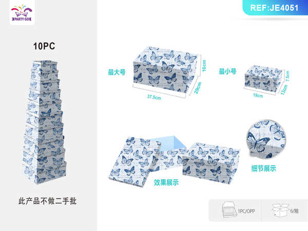 Cutii pentru Cadouri Engros, din Carton, Set de 10 Bucăți, Diverse Modele – Ambalajul Perfect pentru Orice Ocazie Specială! Indispensabile pentru Magazine de Cadouri, Librării, Magazine de Articole de Petrecere, Florării, Supermarketuri și Comercianți Online! Vă oferim o selecție variată de cutii pentru cadouri din carton, disponibile pentru vânzare engros în seturi de 10 bucăți, concepute pentru a transforma orice dar într-o surpriză elegantă și memorabilă. Aceste cutii sunt ideale pentru a ambala cadouri la aniversări, sărbători, nunți, botezuri, evenimente corporate sau orice moment care necesită o prezentare impecabilă. Imaginile prezintă cutii din carton cu diverse designuri și finisaje, adesea cu un capac detașabil sau sistem de închidere. Modelele includ: Designuri Florale și Naturale:Cutii cu ilustrații delicate de flori roz pe fundal albastru deschis, ideal pentru cadouri feminine, primăvară sau evenimente romantice.Cutii cu motive de frunze verzi pe fundal alb, pentru un aspect proaspăt și natural.Designuri Geometrice/Abstracte:Modele cu valuri abstracte în tonuri de albastru și verde, oferind un aspect modern și dinamic.Cutii cu motive de buline (polka dot) colorate pe fundal alb, pentru o notă veselă și jucăușă.Diverse Dimensiuni în Seturi: Seturile de 10 bucăți conțin adesea cutii de dimensiuni diferite, care se potrivesc una în alta (nesting boxes), oferind flexibilitate pentru ambalarea diverselor cadouri și optimizând spațiul de depozitare.