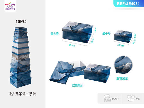 Cutii pentru Cadouri Engros, din Carton, Set de 10 Bucăți, Diverse Modele – Ambalajul Perfect pentru Orice Ocazie Specială! Indispensabile pentru Magazine de Cadouri, Librării, Magazine de Articole de Petrecere, Florării, Supermarketuri și Comercianți Online! Vă oferim o selecție variată de cutii pentru cadouri din carton, disponibile pentru vânzare engros în seturi de 10 bucăți, concepute pentru a transforma orice dar într-o surpriză elegantă și memorabilă. Aceste cutii sunt ideale pentru a ambala cadouri la aniversări, sărbători, nunți, botezuri, evenimente corporate sau orice moment care necesită o prezentare impecabilă. Imaginile prezintă cutii din carton cu diverse designuri și finisaje, adesea cu un capac detașabil sau sistem de închidere. Modelele includ: Designuri Florale și Naturale:Cutii cu ilustrații delicate de flori roz pe fundal albastru deschis, ideal pentru cadouri feminine, primăvară sau evenimente romantice.Cutii cu motive de frunze verzi pe fundal alb, pentru un aspect proaspăt și natural.Designuri Geometrice/Abstracte:Modele cu valuri abstracte în tonuri de albastru și verde, oferind un aspect modern și dinamic.Cutii cu motive de buline (polka dot) colorate pe fundal alb, pentru o notă veselă și jucăușă.Diverse Dimensiuni în Seturi: Seturile de 10 bucăți conțin adesea cutii de dimensiuni diferite, care se potrivesc una în alta (nesting boxes), oferind flexibilitate pentru ambalarea diverselor cadouri și optimizând spațiul de depozitare.