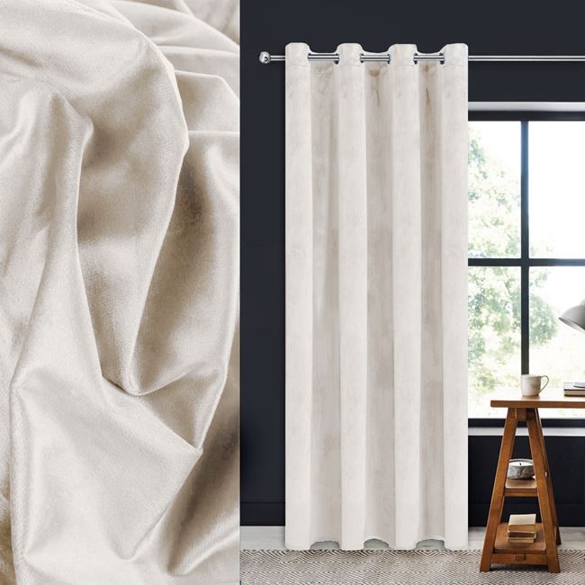 Draperie Alb Ecru Velvet 140x260 cm, prindere cu inele Draperie decorativa de culoare alb ecru. Din material care nu lasa lumina sa treaca. Este cusuta cu inele, diametrul inelelor este de 4 cm, pentru fixare pe tija galeriei. Puneti-o in orice camera doriti si reimprospatati spatiul. Culoare Alb Ecru Velvet Material Poliester tip catifea Latime x Inaltime 140x260 cm
