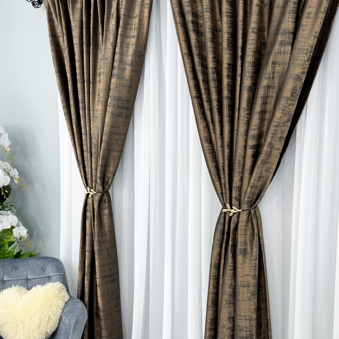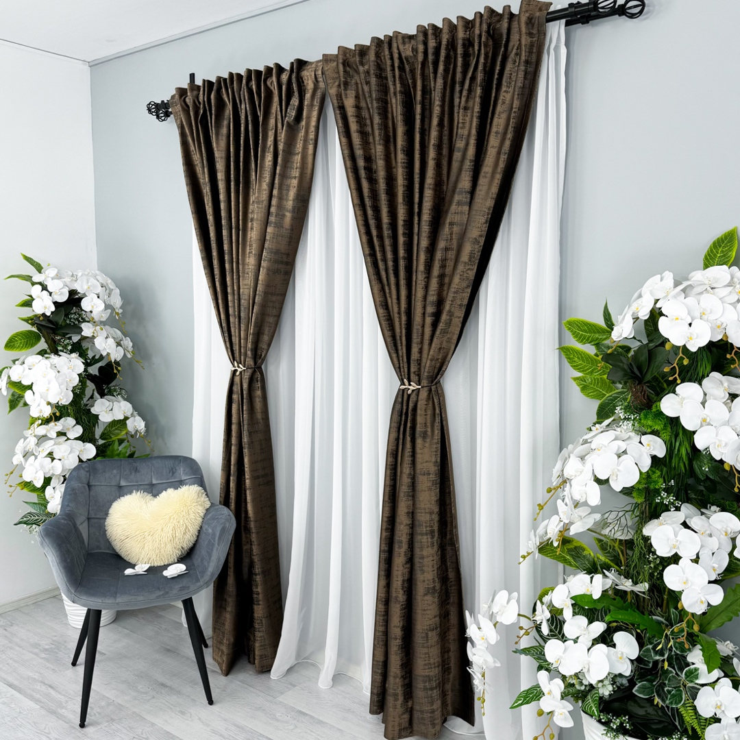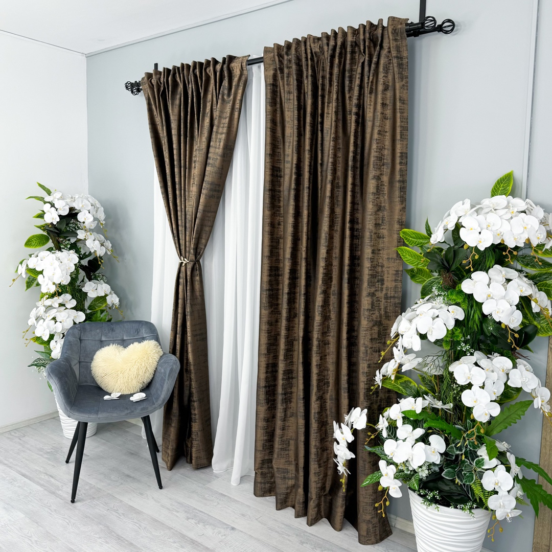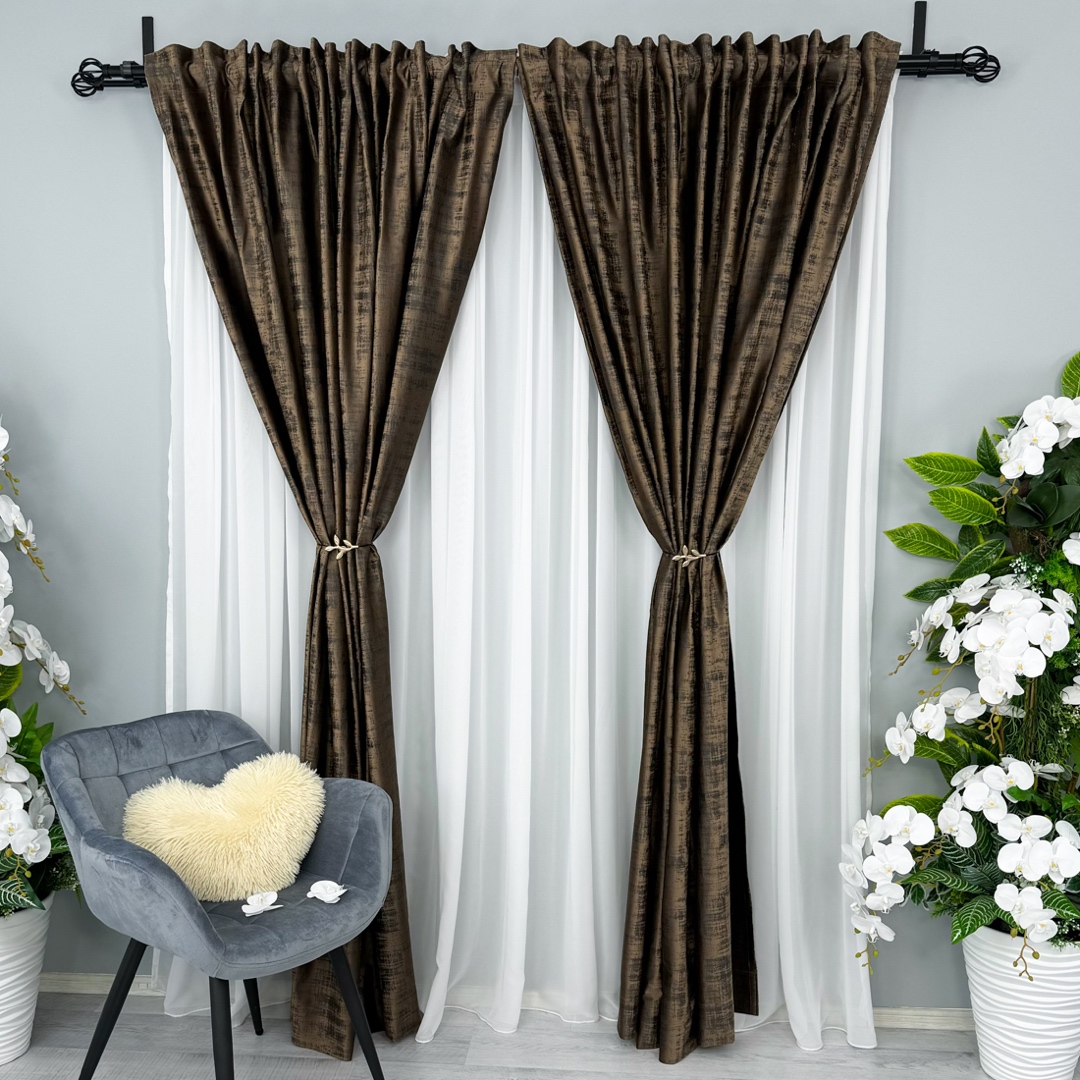Draperie Catifea cu model Venti, Maro inchis, 140cm latime x 260cm inaltime, cu tiv lat pt bara