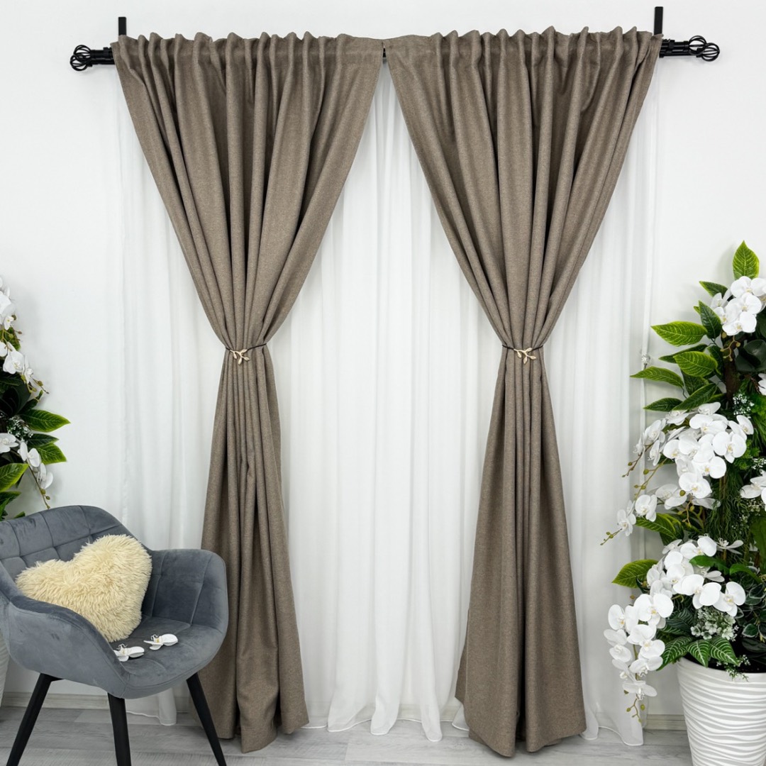 Draperie HoReCa TEXTURATA tip IN, 140cm latime x 260cm inaltime, cu TIV LAT, Cafeniu
