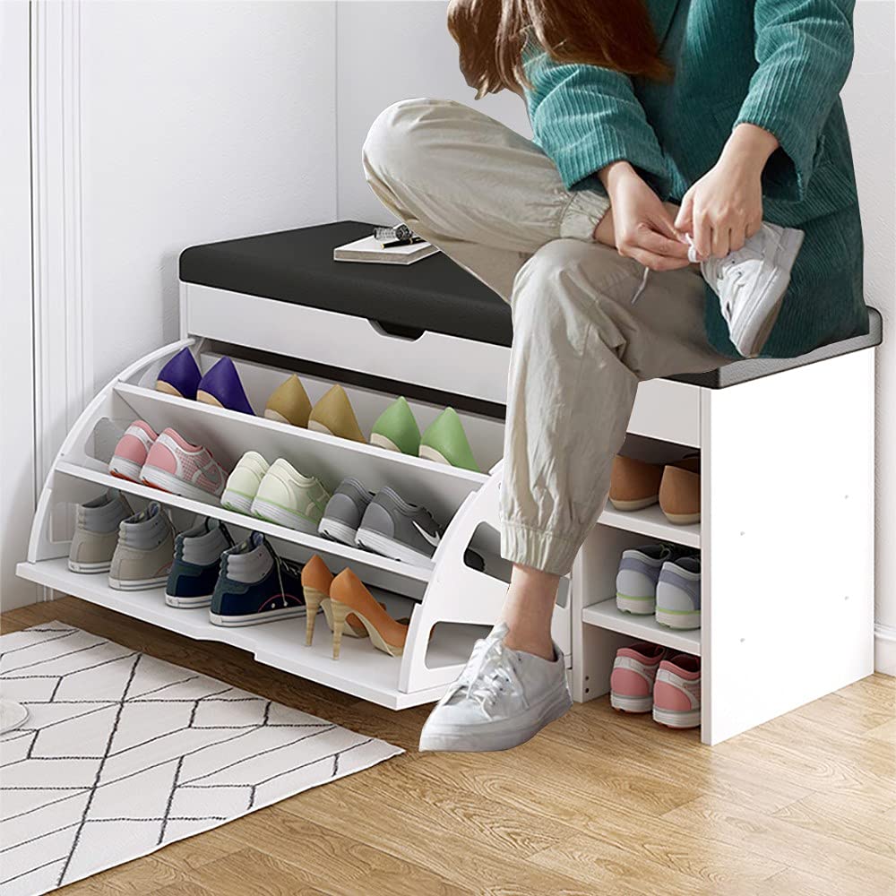 Dulap pentru pantofi, tip bancheta Dimensiune 100 x 34 x 50 cm, Alb Greutate colet: 30 kg O banca cu spatiu de depozitare ofera de obicei un loc pentru a te aseza, avand spatiu de depozitare dedesubt. Acest lucru poate fi util pentru a te incalta sau descalta. Dulapul de pantofi pliabil cu rafturi este, de asemenea, o optiune excelenta pentru persoanele care locuiesc in apartamente mici sau care au putin spatiu de depozitare. In loc sa iti lasi pantofii intr-o gramada pe podea sau intr-un colt, poti sa ii depozitezi intr-un dulap compact, care poate fi pliat si depozitat intr-un spatiu mic atunci cand nu este folosit. Pe langa utilitatea sa practica, un dulap de pantofi pliabil cu rafturi poate fi, de asemenea, o alegere eleganta pentru decorul casei tale. In concluzie, un dulap de pantofi pliabil cu rafturi este o alegere excelenta pentru oricine are nevoie de un spatiu suplimentar de depozitare pentru pantofi. Este practic, compact si cu un design care se potriveste cu decorul tau personal. Depozitare practica pentru pantofi. Cu rafturi, compartimente de depozitare, maner frumos, scaun confortabil din piele artificiala. Creati o atmosfera placuta in holul dvs. cu aceasta piesa de mobilier moderna si la moda. Exista, de asemenea, trei rafturi pentru depozitarea pantofilor, un loc de depozitare, care poate fi deschis in partea de sus si trei rafturi in partea dreapta pentru a va ajuta sa va depozitati hainele in cel mai confortabil si practic mod. Partea din piele artificiala, captusita, serveste ca un scaun confortabil atunci cand va puneti si scoateti pantofii. Va puteti depozita cu usurinta lucrurile personale. Dimensiune: 100 x 34 x 50 cm Material: Pal melaminat, bancheta din piele ecologica Este livrat in cutie, necesita asamblare! Suruburile sunt incluse in pachet. Necesita doar asamblare manuala!