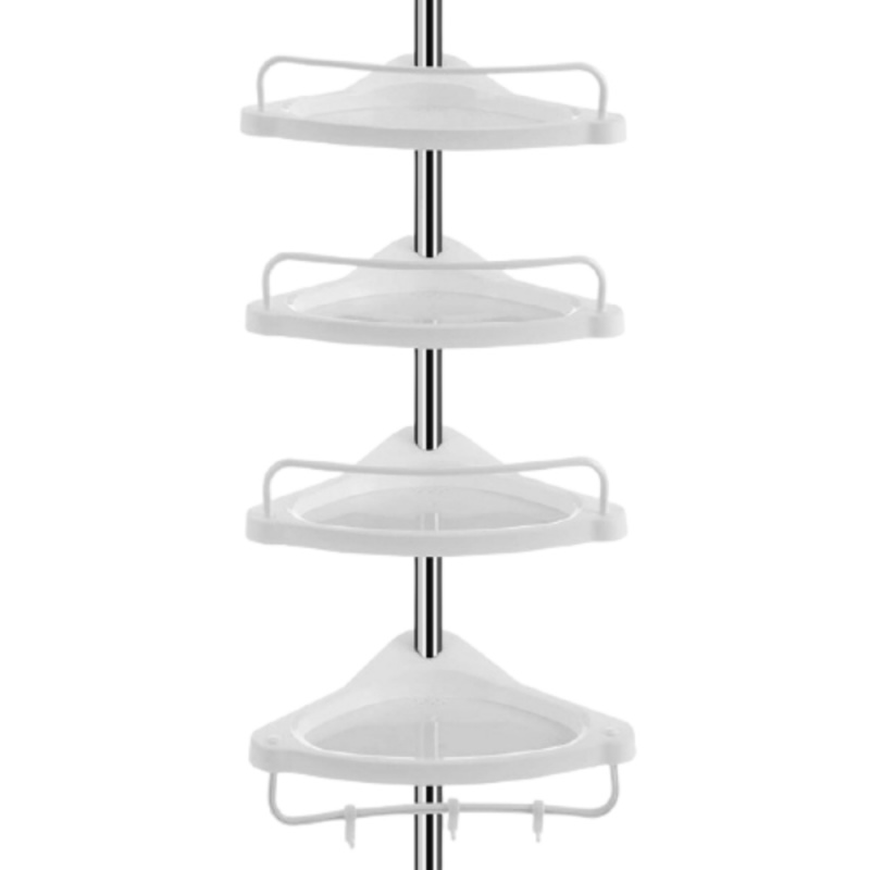 Etajera telescopica pentru baie, 4 niveluri practice Etajera practica pentru baie, cu tija telescopica reglabila. Se potriveste in orice fel baie, indiferent daca aceasta dispune de cabina de dus sau cada de baie. Pe tija telescopica exista 4 compartimente de depozitare si un cuier. Aici, orice fel de recipient cu sampon, sapun, sampon de par, balsam sau uleiuri si alte produse de ingrijire poate fi depozitat cu usurinta. Bratul din plastic permite atasarea de mici prosoape, covorase, etc. Etajera colt pentru baie, inaltime 100-260 cm, ideal pentru lipsa de spatiu de stocare in baie. Raft telescopic de colt pentru baie Material: Plastic/Metal Numar rafturi - 4 Gauri in lateral pentru a evita apa colectata pe ea Inaltimea este cuprinsa intre 100 pana la 260 de centimetri Se poate regla in cazul in care doriti, in functie de dimensiunile propriei camere Dimensiune: W 33.5 x D 21.5 x H 100-260 cm Usor de instalat Culoare: Argintiu/Alb