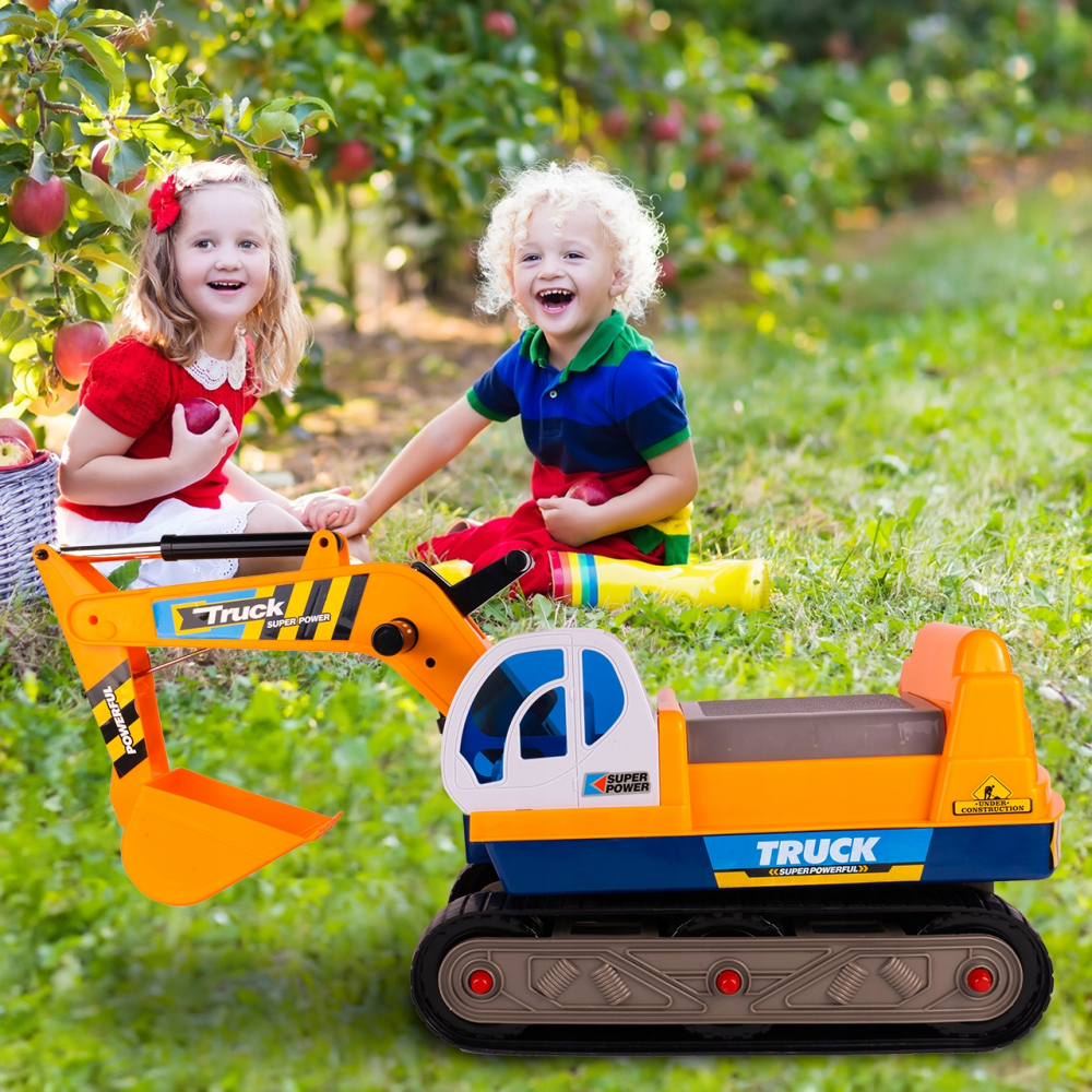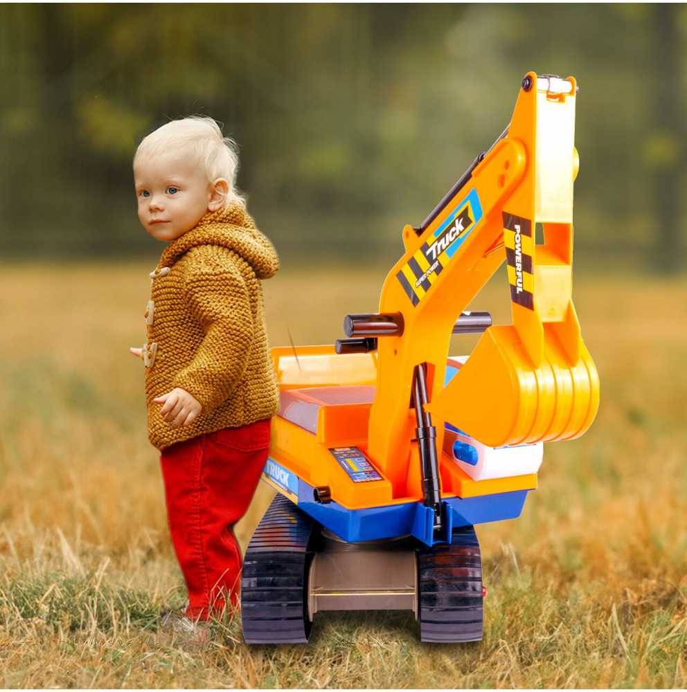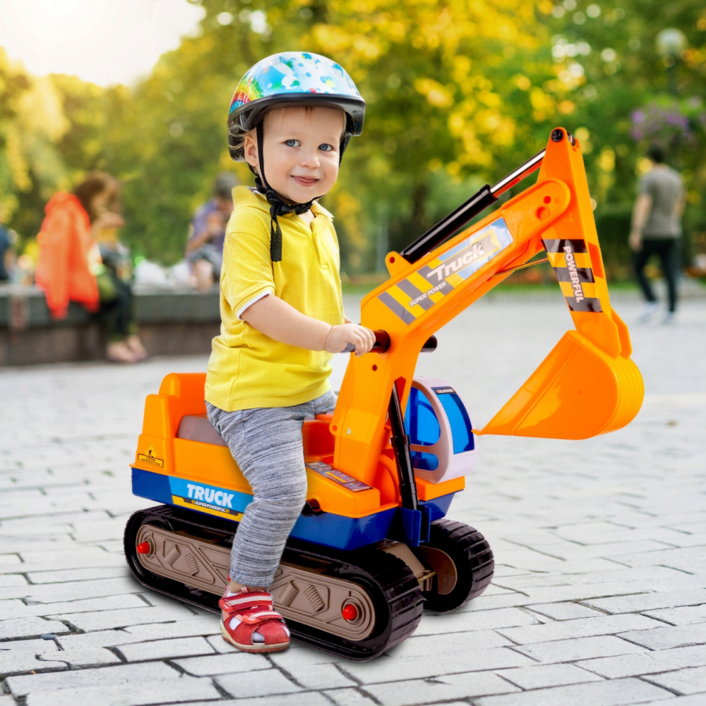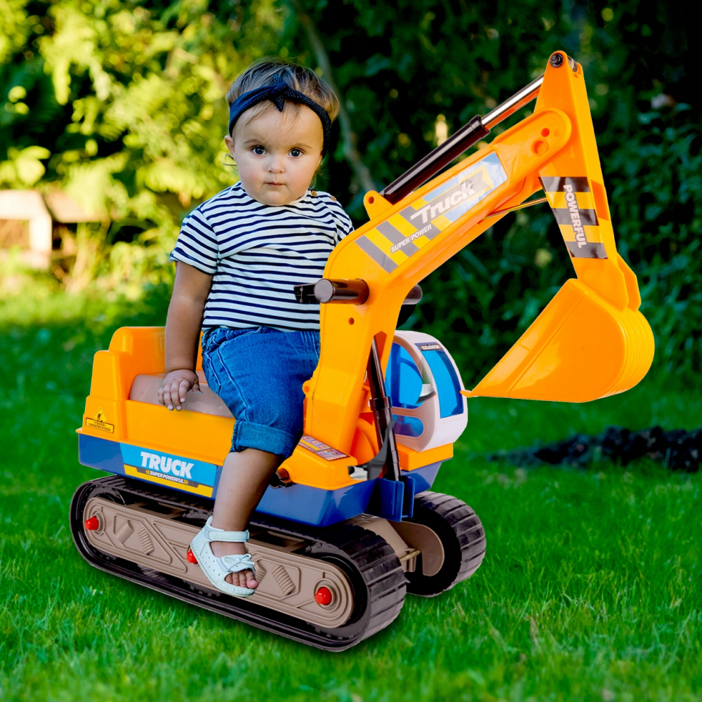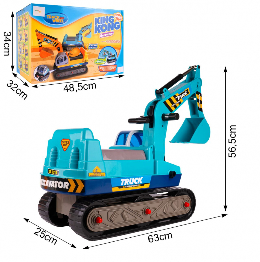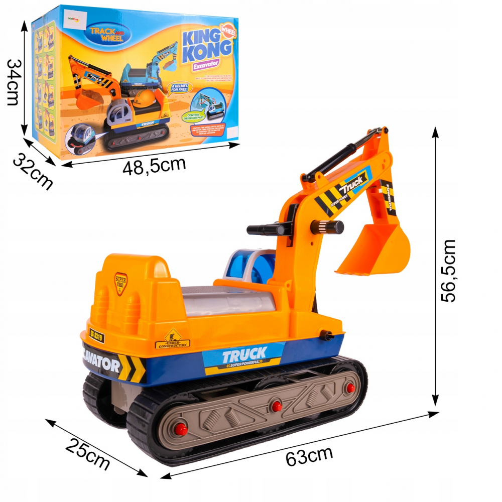Excavator copii fara pedale King Kong Yellow, cupa mobila si Casca, lungime 63 cm, recomandat copiilor de la 3 ani si cu o greutate maxima de 15 kg