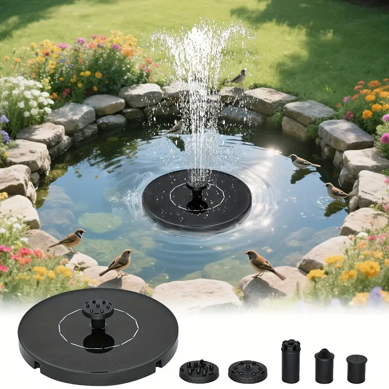 Fantana arteziana plutitoare cu panou solar, IPX8 Datorita panoului solar incorporat, fantana arteziana solara de gradina asigura in mod automat si fara costuri cu electricitatea efectul unei fantani arteziene direct in iazul de gradina, in piscina, in helesteu sau orice amenajarea de apa. Fantana de gradina are un rol estetic cat si ajuta la biodiversitatea din zona amplasata. Economie si protectia mediului - Fantana solara este actionata de energia solara si poate functiona la soare in doar 3 secunde. Nu necesita baterii, nu necesita o investitie suplimentara si nici nu dauneaza mediului inconjurator. Va atrage o multime de pasari in gradina ta. Nu necesita alimentare cu curent electric - avantajul major este ca iti vei putea crea propria fantana arteziana oriunde in gradina ta. Fie ca il vei folosi in piscina, intr-un helesteu de gradina, intr-o vaza pentru pasari, in curtea casei, in gradina casei, nu ai nevoie decat de razele soarelui. 4 duze - Fantana solara vine cu 4 accesorii, pentru forme si modele diferite de pulverizare dorite. Inaltimea de pulverizare poate ajunge pana la 40 centrimetri in functie de puterea razelor solare. Multi-Scop - Acesta pompa solara ecologica are un diametru de 14 centimetri si este foarte potrivita pentru tancuri cu peste, iazuri cu peste, helesteie de gradina, piscine, iaszuri, bai pentru pasari sau pentru oxigenarea apei in lac. Impresioneaza-ti musafirii cu aceasta fantana solara PerfectGarden. Gradina impresionanta - Aceasta pompa solara asigura un spectacol foarte frumos in gradina ta. Ajutati la mentinerea unui mediu pentru scaldarea pasarilor, pentru pestii din mini helesteul de gradina folosind energia solara. O gradina mai confortabila si mai primitaore Cum folosim? Indepartam folia de protectie de pe panoul solar si asezam duza favorita pe mijloc unde se afla evacuarea apei. Asezam produsul in apa astfel incat panoul solar sa fie indreptat in sus, spre soare. Daca panoul solar este expus direct la razele solare, pompa de apa va avea un joc de apa pana la 40 centimetrii. Asezam fantana solara cu panoul solar direct in razele soarelui pentru a ne asigura o evacuare puternica a apei. Daca panoul solar nu este expus direct in razele soarelui, sau este expus partial posibil sa functioneze cu intreruperi sau deloc. Asadar ne asiguram ca produsul este expus direct in razele soarelui. Daca nu se utilizeaza produsul o perioada mai lunga de timp, cum ar fi iarna nu il vom lasa in apa. Curatam cu grija si depozitam intr-un loc ferit de inghet. Sugestie: Asigurati-va ca ati turnat suficienta apa in fantana, astfel incat pompa sa poata cadea suficient sub apa. Ar trebui sa curatati regulat pompa si recipientul in care se afla pentru a evita indundarea cu praf. Fantana poate functiona numai atunci cand panoul solar este expus direct la razele soarelui. Nu stocheaza energie astfel incat pompa are un timp de repaos pe timp de noapte. Specificatii: Dimensiuni: 13 x 13 x 5.2 cm Panou solar: 7 V / 1,4 W Alimentare pompa: 7 V / 140 mA CC Inaltimea jetului de apa: Pana la 50 cm Debit: 200 litri / ora Masa: ~ 170 g Culoare: Negru
