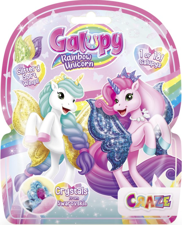 Sus deasupra norilor, in varful curcubeielor stralucitoare ale Arhipelagului Galupia, se afla taramul mistic numit Crystalopia. Aceasta insula plutitoare spectaculoasa este un loc magic, plin de cristale colorate, peisaje fermecatoare si izvoare sclipitoare care danseaza in lumina soarelui. Aici traiesc unicornii Galupy Rainbow, conectati profund cu natura magica din jurul lor. Aripi moi si sclipitoare si cristale Swarovski reale