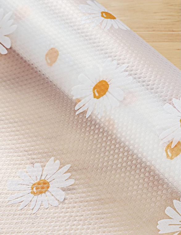Eleganță și funcționalitate se împletesc armonios în folia de protecție pentru rafturi cu dimensiunile de 45 x 300cm, împodobită cu grațioase floricele albe. Este nu doar un accesoriu practic, ci și un detaliu decorativ care va adăuga o notă de rafinament și prospețime oricărui spațiu. Calitatea superioară a materialului asigură o protecție durabilă împotriva zgârieturilor, petelor sau a uzurii zilnice, păstrând rafturile în stare impecabilă pentru mai mult timp. Folia este flexibilă și rezistentă, adaptându-se cu ușurință la diverse forme și dimensiuni de suprafețe. Modelul cu floricele albe adaugă un aer de puritate și simplitate, transformând orice raft sau suprafață într-un punct focal plăcut ochiului. Aplicarea foliei este un proces simplu și rapid. se fixează uniform, fără bule de aer sau cute. Material: Garniturile neadezive pentru rafturi dulap de bucătărie au o moliciune bună, sunt sigure și nu au miros sau grăsime, ușor de curățat, au un efect de amortizare bun și vă pot proteja eficient casa. Ușor de adaptat: căptușeli pentru rafturi de cămară, puteți folosi foarfece pentru a tăia căptușeala în orice dimensiune și formă în funcție de nevoile dvs. reale, de la covorașe de masă la suporturi mici, durabile, ușor de curățat și reutilizabile. Ușor de curățat: utilizarea căptușelii pentru sertare poate proteja eficient dulapurile, dulapurile de bucătărie, mesele și alte mobilier de locuit și de casă. Când căptușeala sertarului este murdară, pur și simplu ștergeți-o cu un prosop umed și uscați-o înainte de utilizare. Anti-alunecare: suprafața căptușelilor pentru rafturi are texturi neuniforme, fără absorbție de lipici, ceea ce poate crește frecarea cu obiectul, nu se ondula, nu este ușor de alunecat și are un grad ridicat de potrivire. Este potrivit pentru toate tipurile de suprafețe netede.