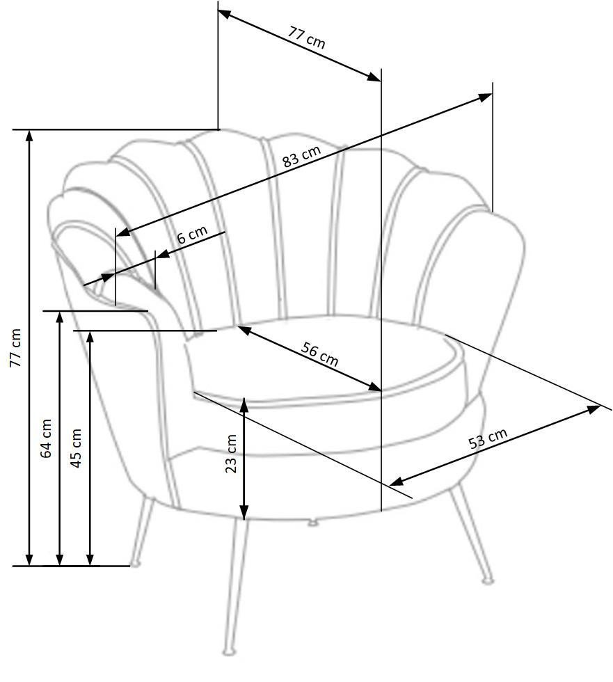Amorinito este un fotoliu tapitat cu catifea de calitate inalta, picioarele fiind realizate din metal vopsit. In stil modern, confortabil si elegant, este ideal pentru camera de zi, dormitor, zone de relaxare, cafenele, birouri. Dimensiuni: Inaltime scaun – 77 cm Inaltime sol – sezut – 45 cm Latime – 81 cm Adancime sezut – 77 cm Produsul nu este asamblat. Montarea se face usor si rapid pe baza instructiunilor de montaj aflate in pachet, iar aceasta dureaza 10 – 15 minute.