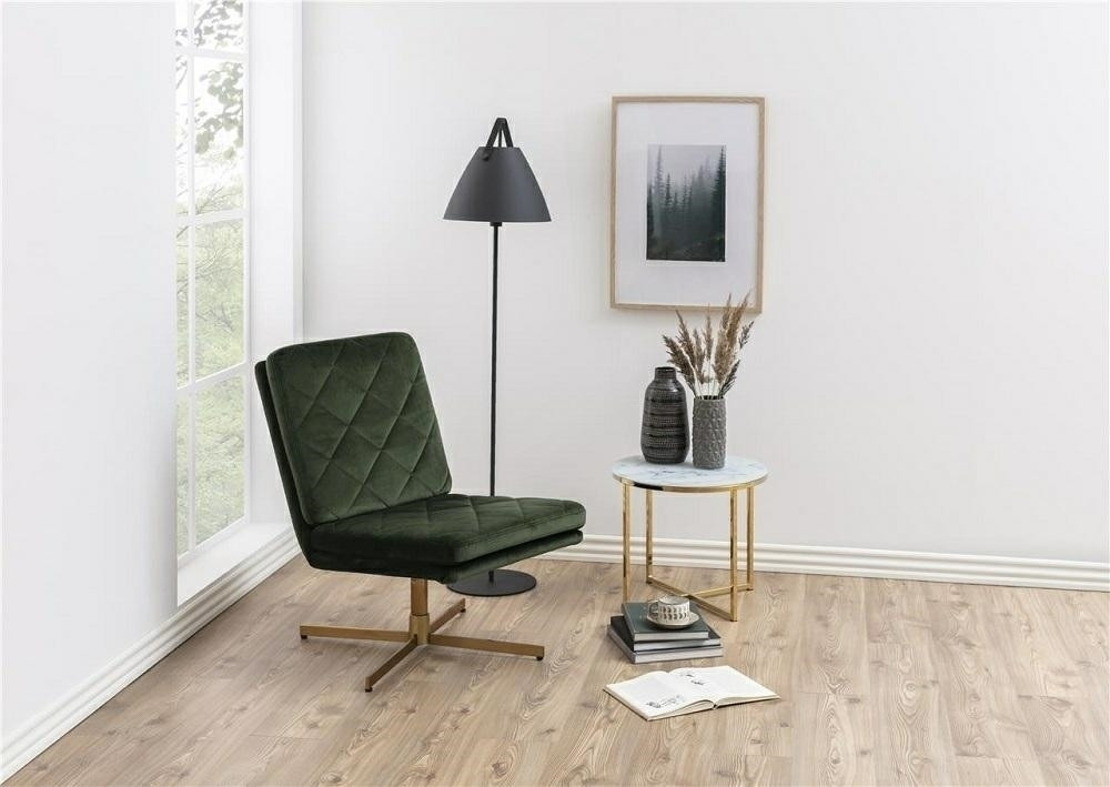 Fotoliu Carrera Velvet este un fotoliu versatil, usor de asortat cu diferite stiluri de amenajare, spătarul tapițat cu o catifea extrem de elegantă și plăcută la atingere. Scaunul și spătarul se pot desprinde cu ușurință de corp, iar acest lucru facilitează curățarea scaunului. Totul este așezat pe o bază în formă de cruce, realizată din metal de culoare aurie. Fotoliul Carrera va fi perfect pentru o cameră de zi, birou sau bibliotecă de acasă. Dimensiuni: Latime: 60 cm Adancime: 79 cm Inaltimea totala: 87 cm Detalii tehnice: Cadrul este realizat din metal Tapiteria este confectionata din catifea. Culoare: Verde închis / Auriu Produsul nu este montat, este destinat pentru auto-asamblare. Instructiunile de montaj vin in colet.