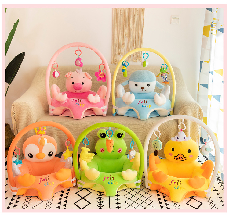 Fotoliu din plus bebe Felicity cu centru de joaca Fotoliu din plus bebe Felicity centru de joaca este un fotoliu cu un design special gandit pentru sustinerea confortabila a coloanei bebelusului. Pozitia acestuia este foarte confortabila. Fotoliul are forma de animalut dragalas (diferite modele), are manere si o arcada detasabila, unde se pot agata jucarii cu care copilasul se poate distra. Dispune de niste decupaje pentru picioruse, copilasul bucurandu-se ca se poate misca liber. Portiunea pe care este asezat este moale, astfel ca bebelusii vor sta extrem de confortabil in fotoliul din plus. Fotoliul este fabricat din material de calitate si este umplutut cu vatelina. Partea inferioara este antialunecare, iar spatarul este suficient de inalt pentru a sustine spatele copilului. Dimensiune: 53 cm x 53 cm x 50 cm (inaltimea spatarului 39 cm) Sunt incluse 3 jucarii agatate la arcada, care pot sa difere fata de imaginile de prezentare! Atentie! Nu lasati bebelusul nesupravegheat, verificati de fiecare data pozitionarea fotoliului, sa fie pozitionat pe o suprafata plana. Nu puneti fotoliul in pat sau pe suprafete aflate la inaltime.