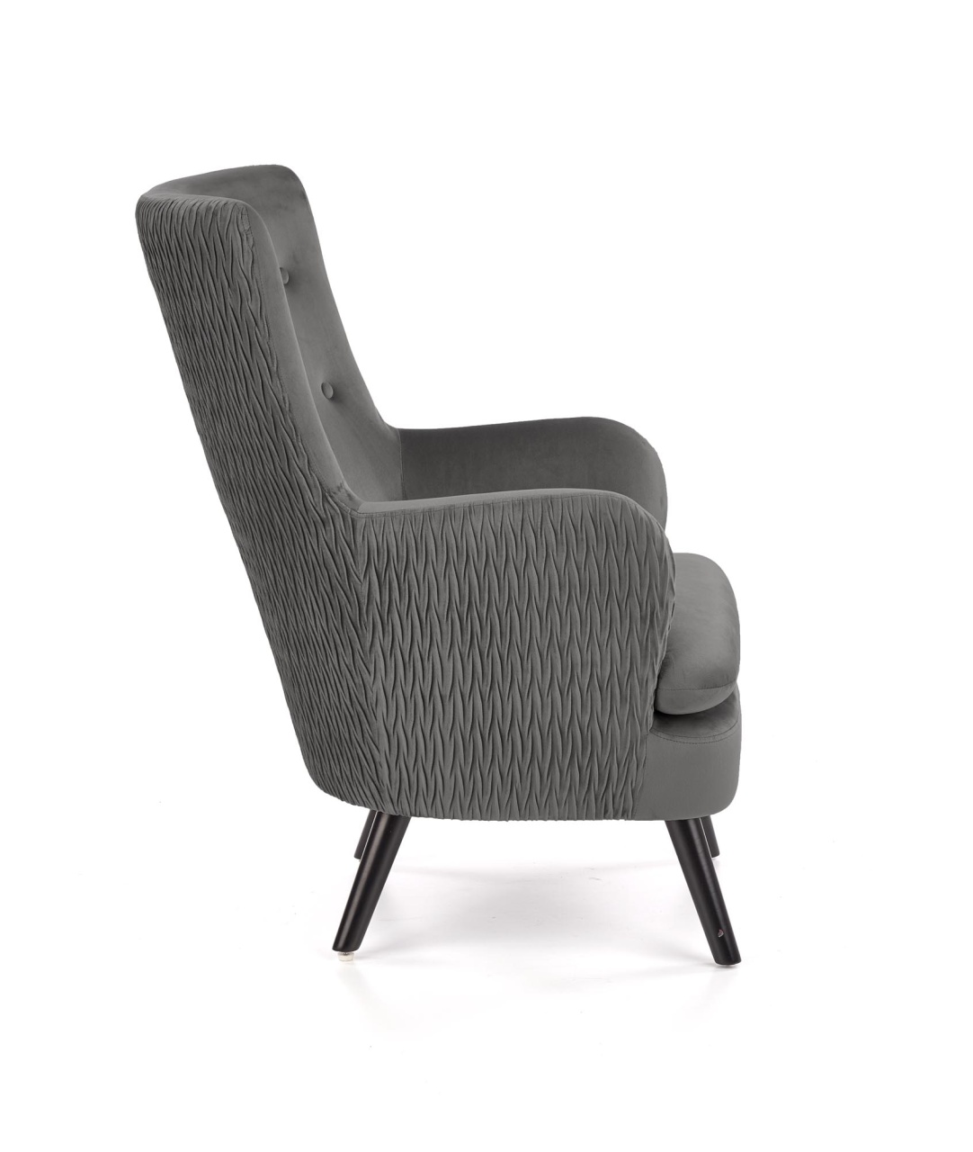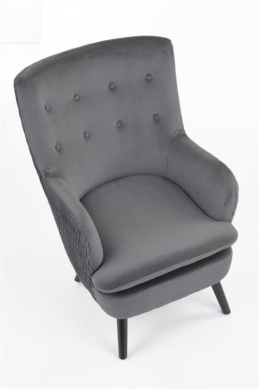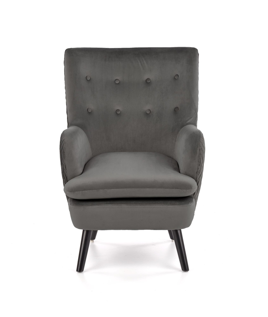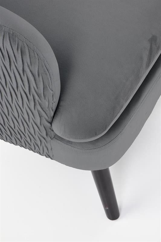 Fotoliul tapitat Ravel Velvet incanta prin design-ul ultramodern si ofera un confort optim, fotoliu ce se poate incadra in orice decor. Dimensiuni: Lățime: 70 cm Lungime: 78 cm Înălţimea totală: 100 cm Înălţimea șezutului față de sol: 48 cm Detalii tehnice: Picioarele și cadrul sunt realizate din lemn. Tapițeria este confecționată din catifea. Culoare: Gri Produsul nu este montat. Asamblarea este rapidă și ușoară.
