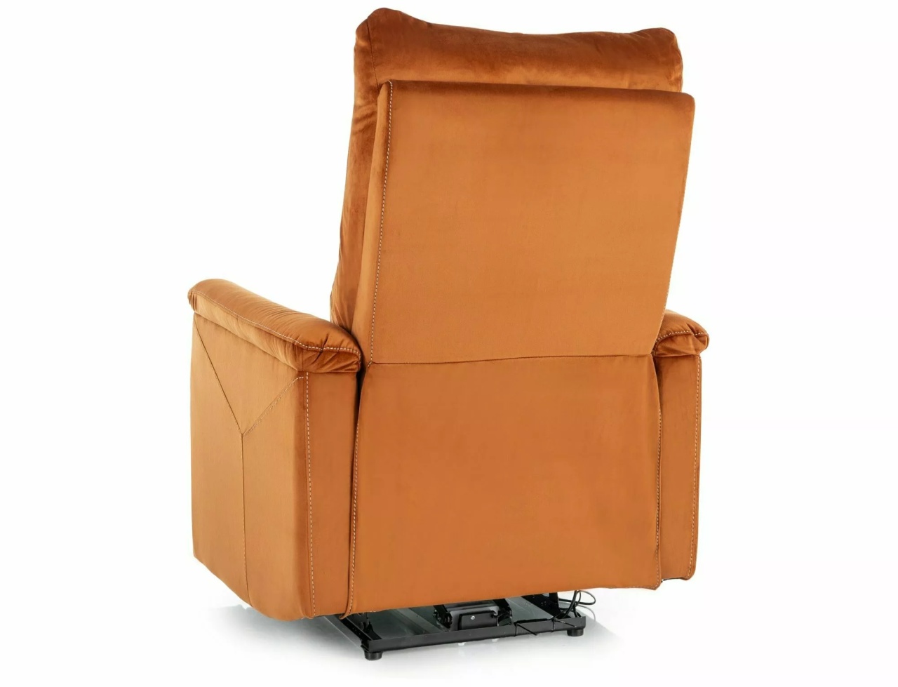 Fotoliul recliner Neptun este o piesă de mobilier elegantă și funcțională, tapitată cu un material catifelat, ce oferă un aspect modern și sofisticat. Conceput pentru confort sporit, fotoliul dispune de mecanism recliner, care permite ajustarea ușoară a poziției pentru relaxare maximă. Dimensiuni: A - 96, B - 76, C - 48, D - 57, E - 94÷160, F - 5 cm Detalii tehnice: Fotoliu electric rabatabil, material catifea: Bluvel 4215, cadru: metal, culoare: scorțișoară / negru. Rabatabil controlat prin butoane pe partea dreaptă, port USB. Produsul nu este montat, este destinat pentru auto-asamblare. Instrucțiunile de montaj vin în colet